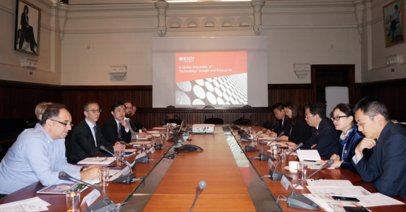 代表团访问皇家墨尔本理工大学,与皇家墨尔本理工大学主管科学、工程与健康学院副校长Tom Steiner教授,科学学院副院长Kay Latham教授,计算机学院副院长Lawrence Cavedon教授、科学,工程与健康学院国际事务顾问Christine Chow博士,科学学院讲师Andy Song博士等参加座谈会。双方针对计算机科学,人工智能,机器学习等方面的教师及学生项目的合作进行了深入的探讨,基本确定了合作内容,为签署合作协议奠定了基础。