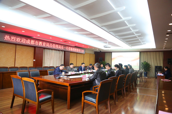 【本网讯】11月10日上午,成都市教育局局长吕信伟、副局长王志成一行6人来新莆京官网调研工作。学校校长周激流、副校长贺盛瑜和学校相关部门负责人与吕信伟一行进行了交流。