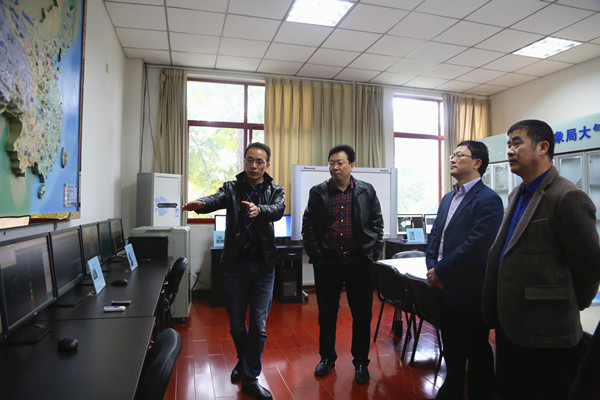 在周激流、贺盛瑜的陪同下,吕信伟一行走访了信息学科群和大气学科群,对学校的教学科研、学生创新等方面情况进行了深入的调研。
