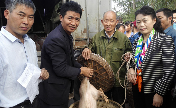 倪鸣、贺盛瑜代表学校向部分贫困户发放了慰问金,并向二龙村村委移交了帮扶贫困户的45头猪仔。贫困户在领到慰问物资后,纷纷表达了感激之情,他们朴素的行为和语言让新莆京官网人员深受感动。