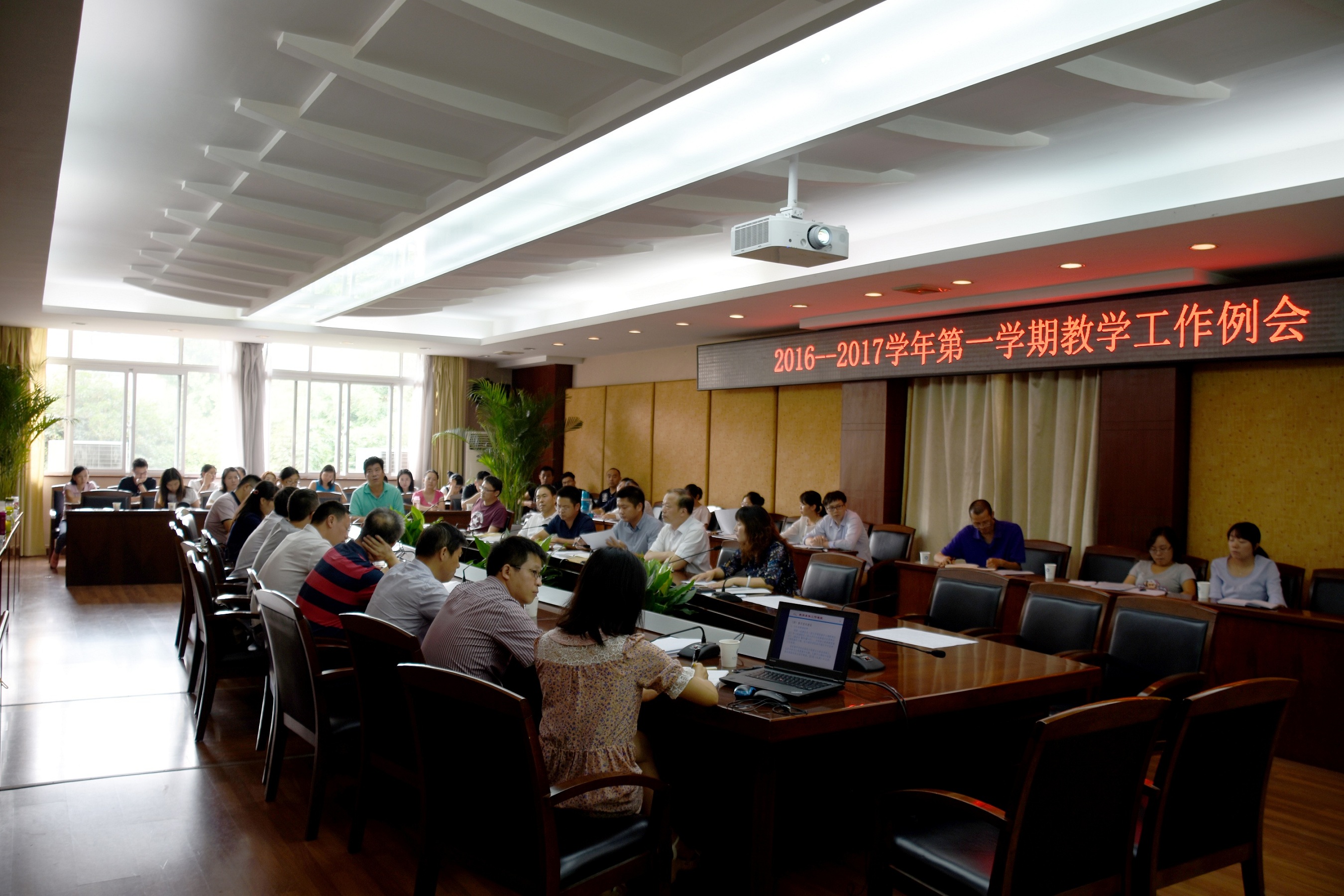 【本网讯】9月12日下午,学校在航空港校区第七会议室召开本学期期初教学工作例会,副校长何建新,各教学单位主管教学院长(主任、助理)、教学办主任、教学秘书、教务处负责人及工作人员参加了会议。会议由教务处处长陈敏主持。