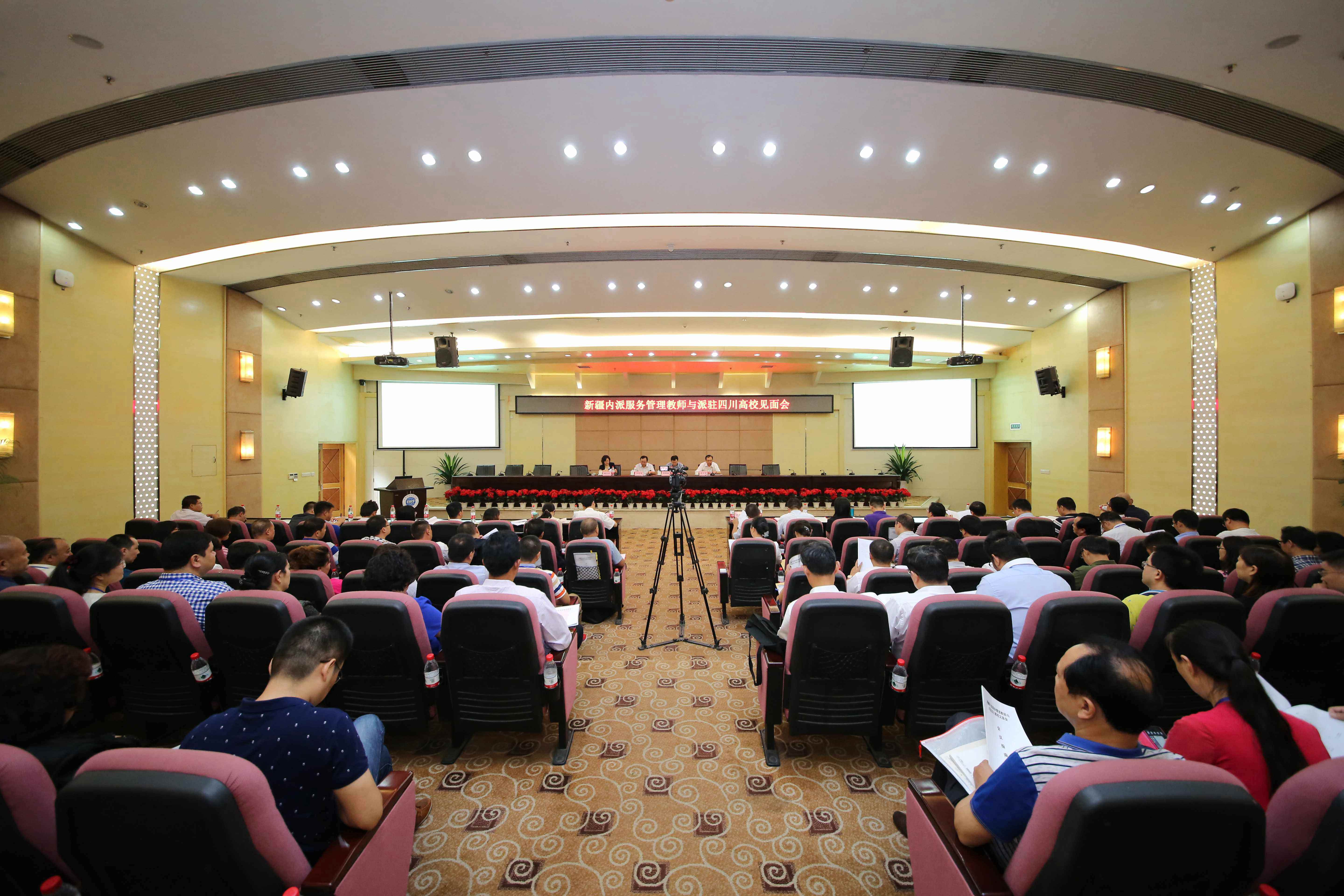 【本网讯】9月9日,新疆内派服务管理教师与派驻四川高校见面会在新莆京官网召开。省委教育工委委员、省教育厅党组成员李光华,新莆京官网校长周激流,新疆内派教师协调站站长徐生智,59名新疆内派教师及四川相关高校代表参加了此次见面会。见面会由省委教育工委、省教育厅宣传思想工作处处长陈小红主持。