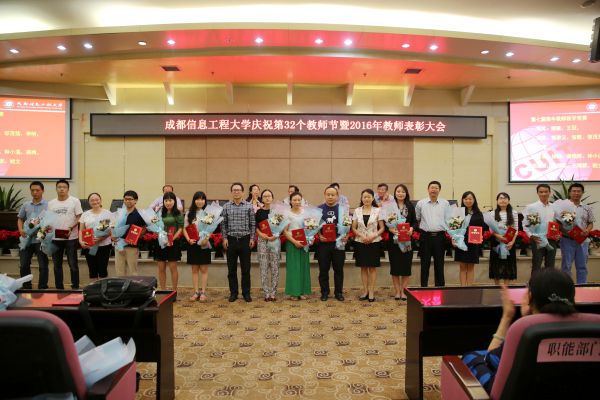 【本网讯】9月9日下午,学校在图书馆国际会议厅举行新莆京3969庆祝第32个教师节暨2016年教师表彰大会。学校党委书记赖廷谦,校长周激流,党委副书记敬枫蓉、倪鸣,副校长于世祥、贺盛瑜、向武、何建新出席了表彰大会,学校中层以上领导干部、各学院师生代表参加了大会。表彰大会由副校长何建新主持。