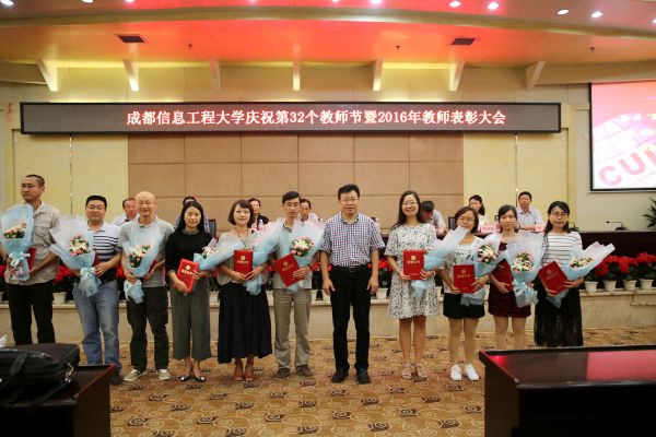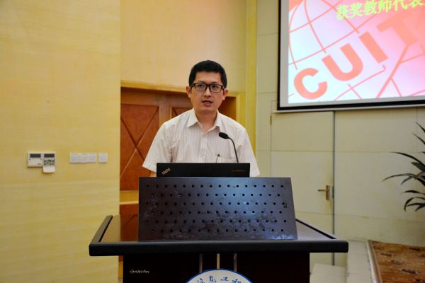 电子实验中心赵建代表获奖教师发言。他说,作为一名教师,爱生敬业是职业道德,求实创新是职业精神。不仅要继承先辈们的学术传统、坚持抱道不曲的为学精神,更要加强科学研究、积淀学术功底,从而提高教学水平、培养一流学生。他表示,今后将以“创新、协调、绿色、开放、共享”的教育理念发展自己,以“爱生、敬业、求实、创新”的工作原则要求自己,积极作为,有效作为,将与所有成信教师携手同心,薪火相传,发扬成信大的优良传统,共创成信大的新成果,共同谱写成信大的新篇章。