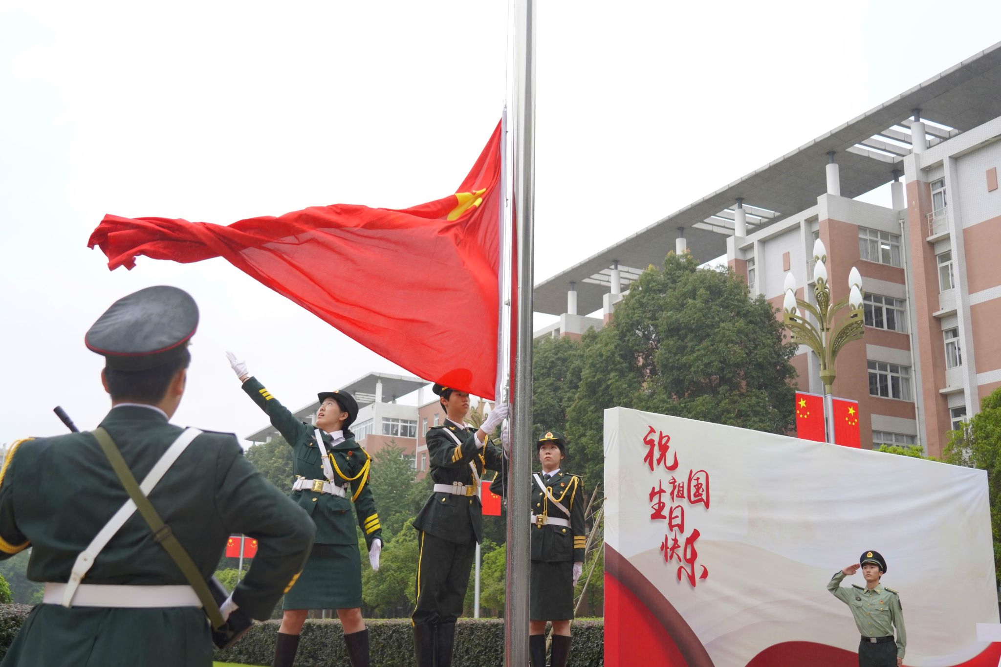 七十五载逢盛世,砥砺前行谱华章。学校举行升旗仪式,旨在唤醒师生的爱国情怀与责任感,指引我们勇于担当,追求卓越,传递成信人对祖国的美好祝愿。全校师生将以更加振奋的精神,投入到民族复兴的宏伟事业,在为祖国献力的伟大征程中,以拼搏与贡献书写新莆京3969的新篇章。