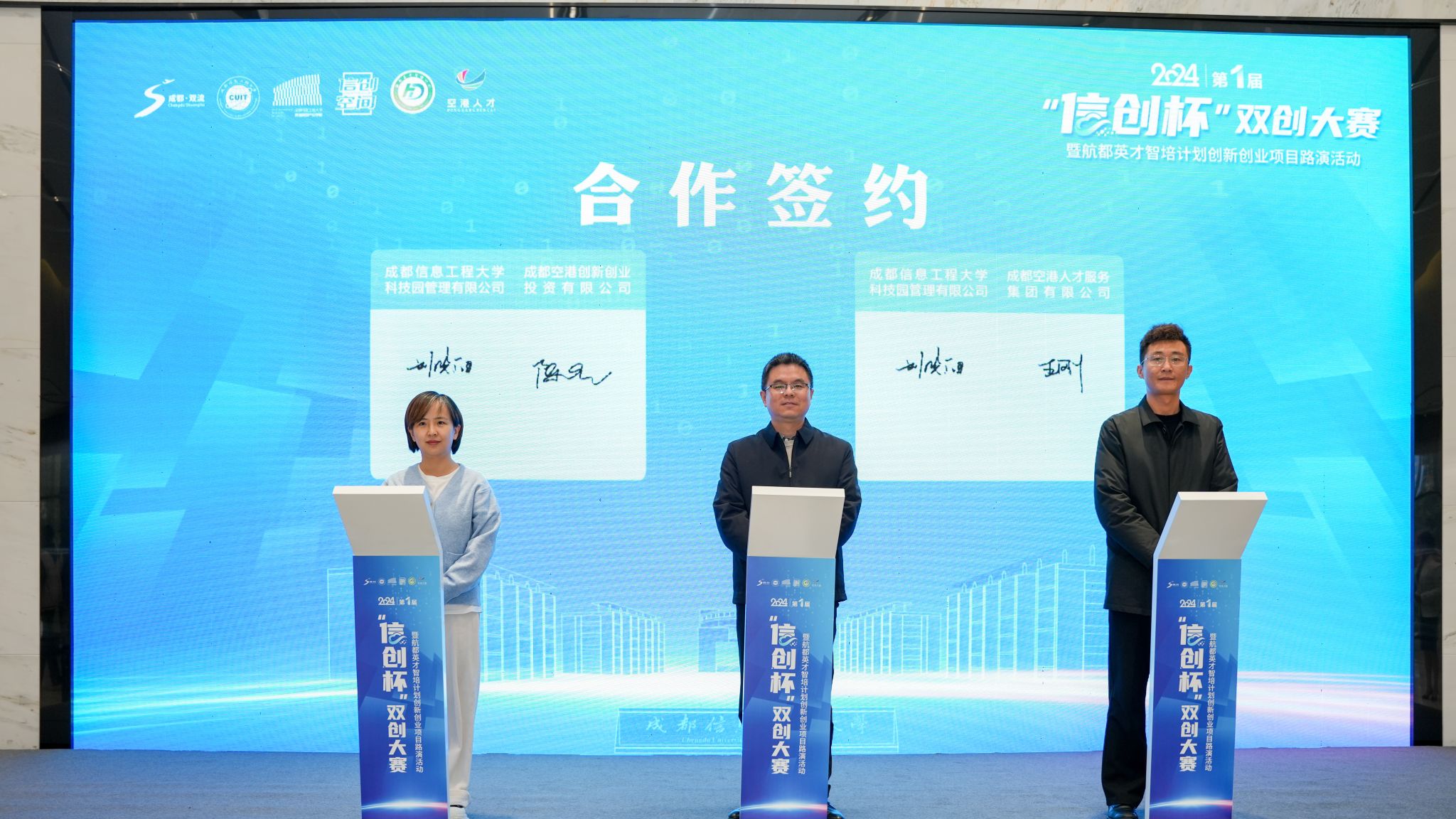 新莆京3969科技园管理有限公司与成都空港创新创业投资有限公司、成都空港人才服务集团有限公司围绕项目孵化、技术问诊、投融资对接等方面内容进行合作签约。