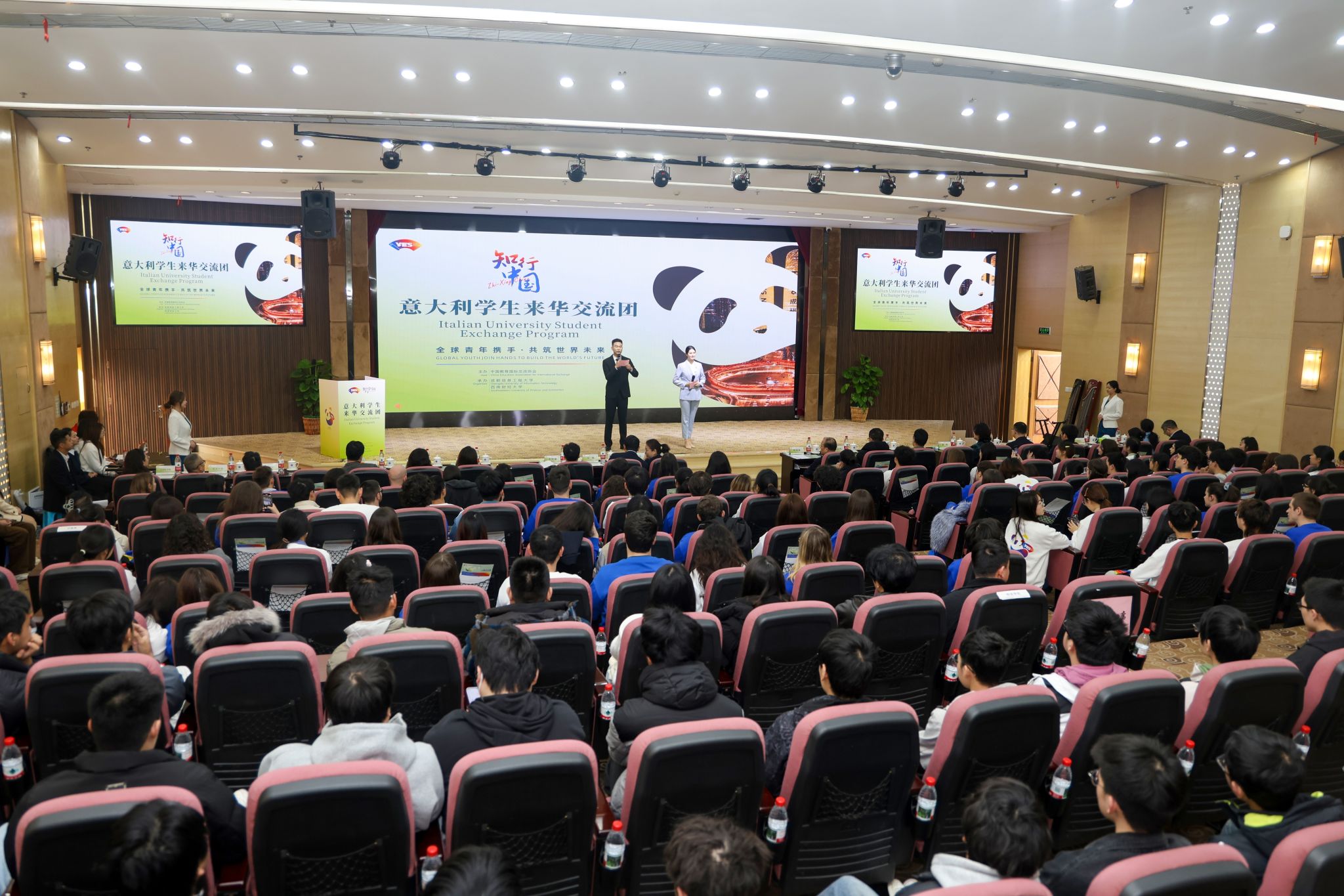 【本网讯】3月23日,由中国教育国际交流协会主办、新莆京3969承办的“知行中国——意大利大学生来华交流团(成都站)活动”开幕式,在学校国际会议厅举行。中国教育国际交流协会高等教育合作部副主任周立东,四川省教育厅对外交流合作处处长王拉沙,四川省外事办公室欧洲非洲处副处长李坤键,学校校长何建新、副校长吴锡,48名意大利大学生,学校相关单位负责人以及300余名师生代表共同参加了本次开幕式。