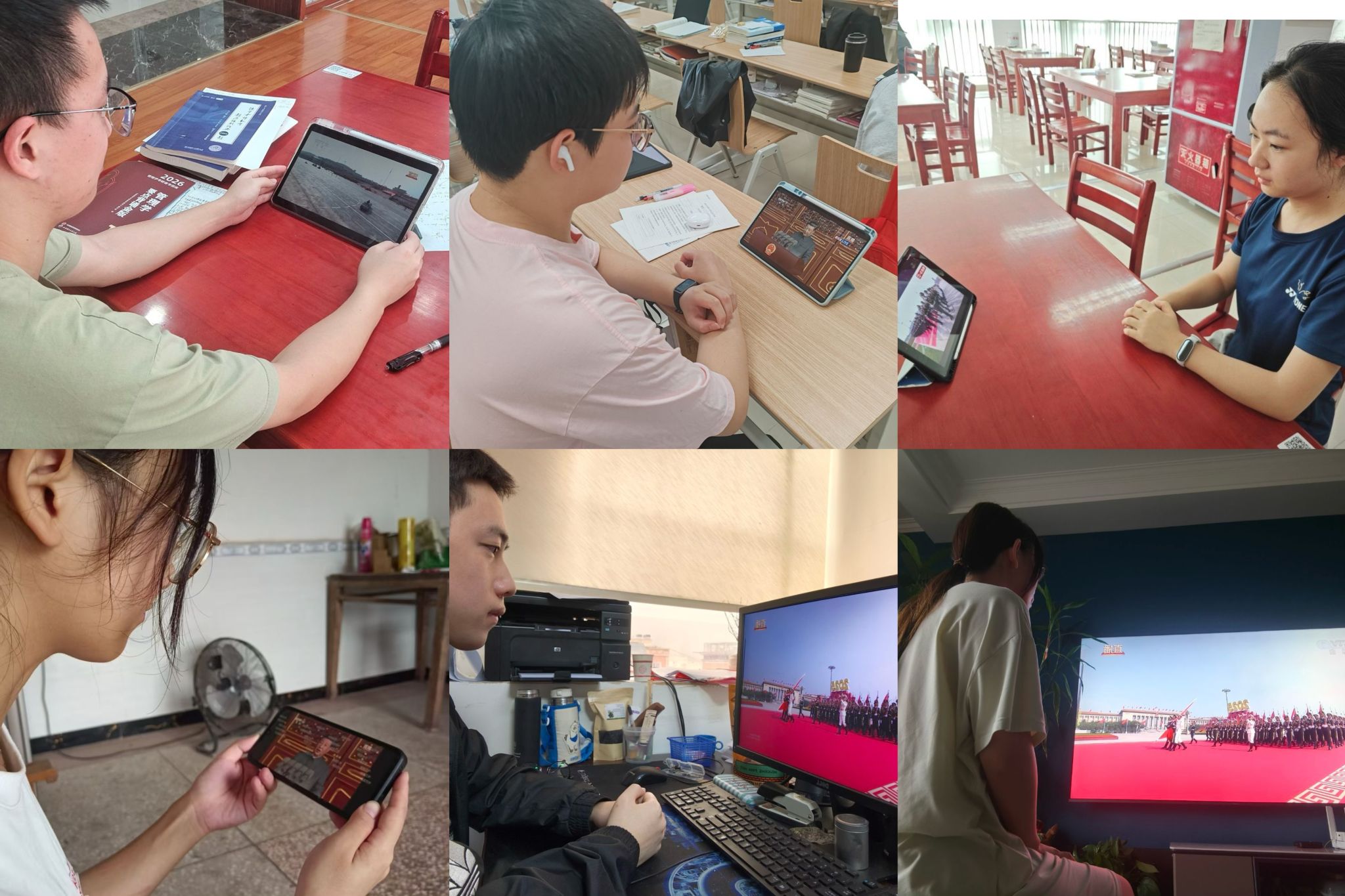 【本网讯】9月3日上午,纪念中国人民抗日战争暨世界反法西斯战争胜利80周年大会在北京天安门广场隆重举行。学校组织在校师生在航空港校区行政楼第七会议室集中观看大会直播,党委副书记杨奇才,党委常委、副校长陈权亮,党政办公室、党委宣传部、研究生院、计划财务处、信息中心等部门以及部分学院师生代表参加了集中观看。校内各单位组织师生在会议室、办公室、教室、寝室等通过电台、电视、互联网等媒体平台收听收看大会直播,并通过微信群、QQ群等学习工作群交流感想和分享心得体会,共同铭记历史、缅怀先烈、珍爱和平、开创未来。