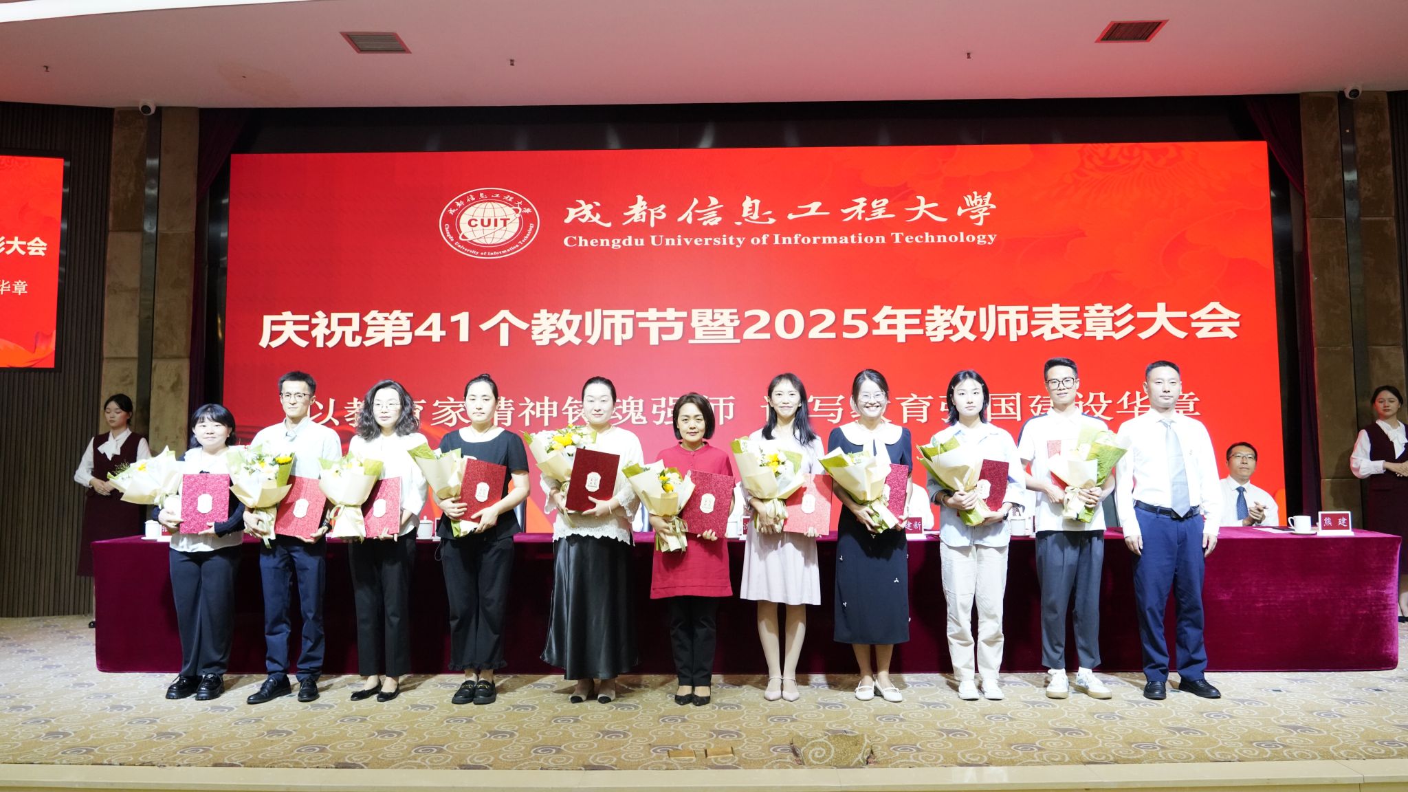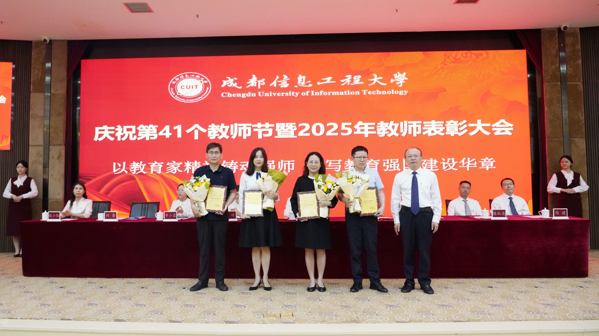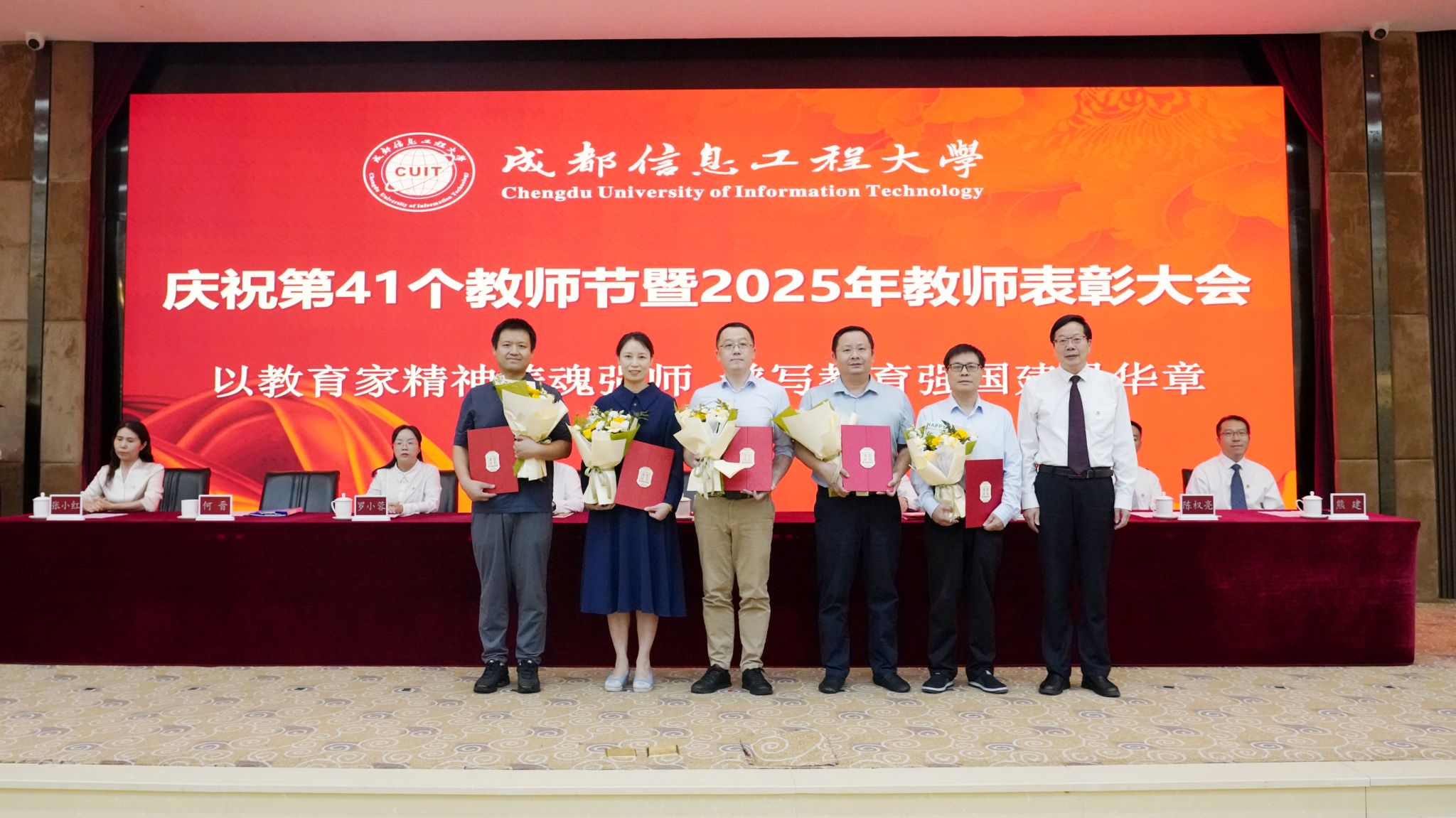 学校对在各个领域取得突出成绩、为学校发展作出卓越贡献的优秀教师予以表彰,学校校长何建新宣读了表彰文件。张葛祥、李勇两位教授遴选为享受国务院特殊津贴专家;大气科学学院院长华维教授获“全国气象教学名师”称号;大气科学学院葛非教授获国家级人才称号;唐婷婷、李勇、陈浩3名教师获省级人才称号;赵长名老师获成都市人才称号。学校启动荣誉体系,教务处、科技处获“管理服务先进集体”称号;自动化学院、人工智能学院获“就业工作先进集体”称号;昌燕等5名教师获“研究生优秀指导教师”称号;郜东瑞等8名教师获“成信科技英才奖”;于尧等25名教师获“管理服务先进个人”称号;侯倩等10名教师获“就业工作先进个人”称号;田媛等10名辅导员获新莆京官网“十佳辅导员”称号。白杨、郭俊等10名教师获学校“青年教师教学奖”。此外,还有数10名教师在“第九届全国高等院校英语教师教学基本功大赛”“第十二届电工电子基础课程实验教学案例设计竞赛”等教学竞赛中获国家级、省级奖项。学校还对本年度获得“光荣从教30年”荣誉称号和“光荣退休奉献奖”的退休教师予以表彰。