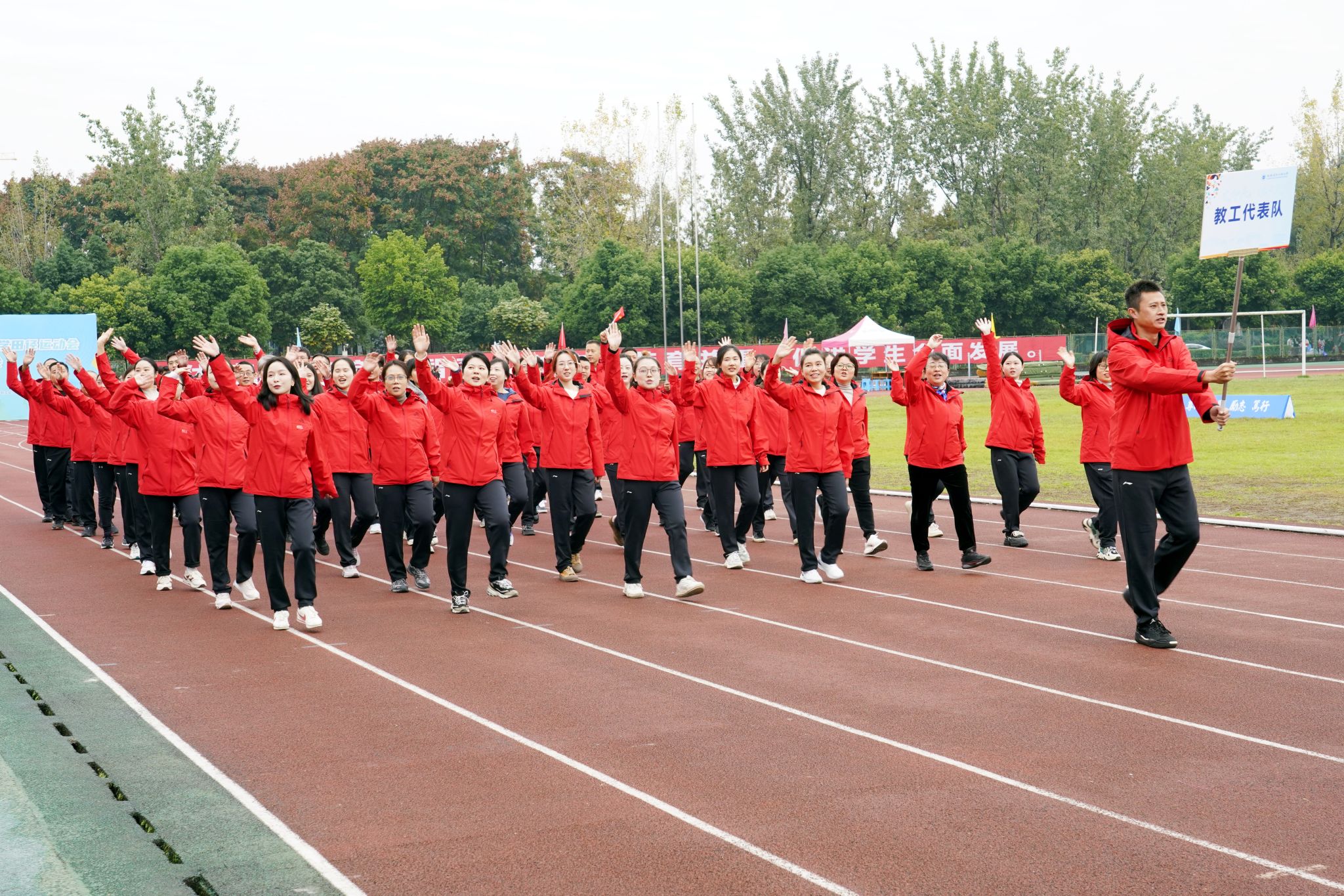 随着发令枪响,运动场瞬间成为激情与活力的海洋。跑道上,运动员如离弦之箭,奋力向前;田赛场中,跳高选手身姿轻盈,一次次挑战新的高度;教工趣味运动会现场同样欢声不断,不同的项目不仅考验技巧,更凝聚了团队默契,展现出教师们课堂之外的别样风采。