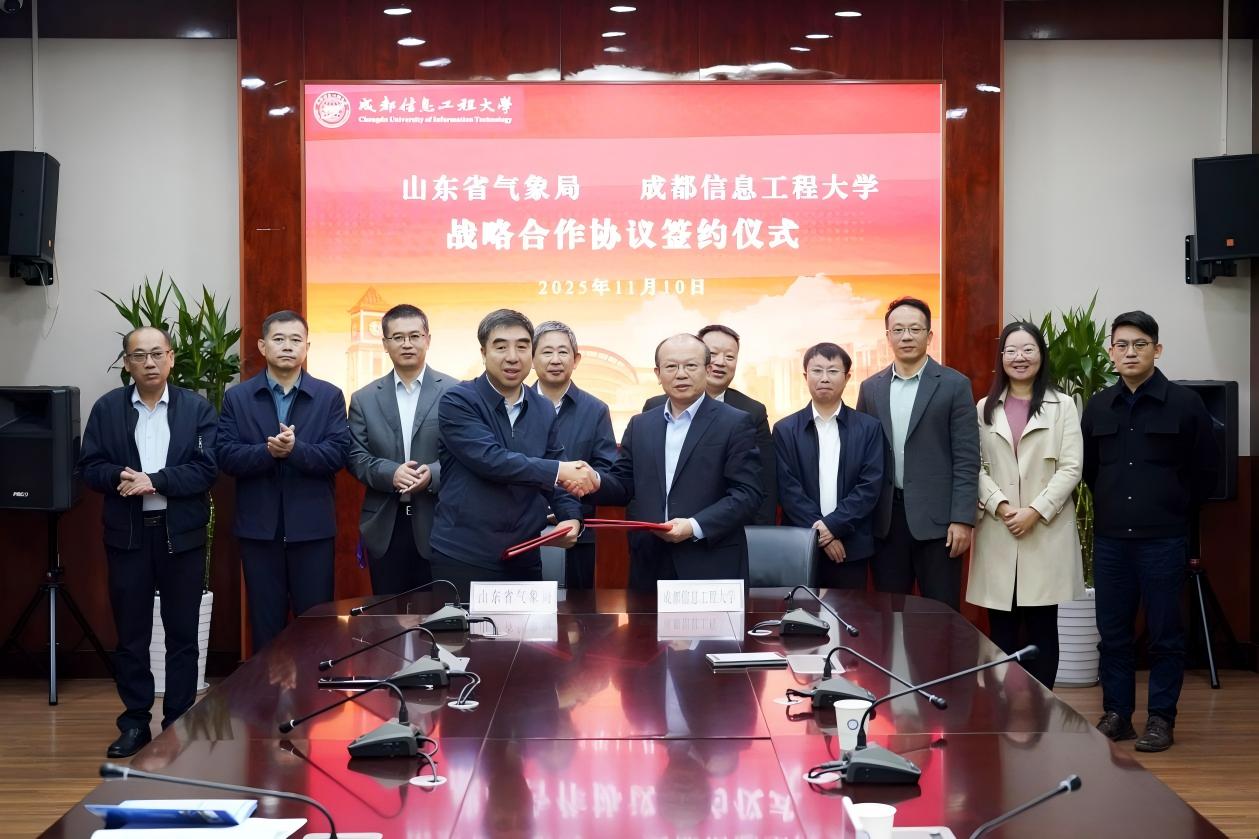 何建新对庞鸿魁一行表示热烈欢迎,对山东省气象局长期以来对学校的支持表示感谢。他介绍了学校在学科建设、人才培养、科学研究等方面的基本情况。他强调,面对人工智能和大模型引领的新一轮气象科技变革,学校将升级人才培养体系,强化学生实践能力,精准对接国家和区域气象现代化需求。他希望以此次协议签署为契机,深化双方在气象装备研发、人影科技攻关、人才培养等领域的合作,共同为气象强国建设贡献力量。