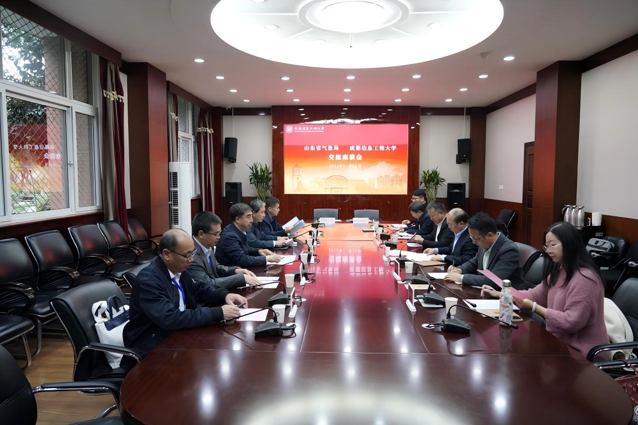 【本网讯】11月10日,山东省气象局党组书记、局长庞鸿魁一行来校交流座谈。学校党委副书记、校长何建新,党委常委、副校长舒红平参加会议。会议由舒红平主持。