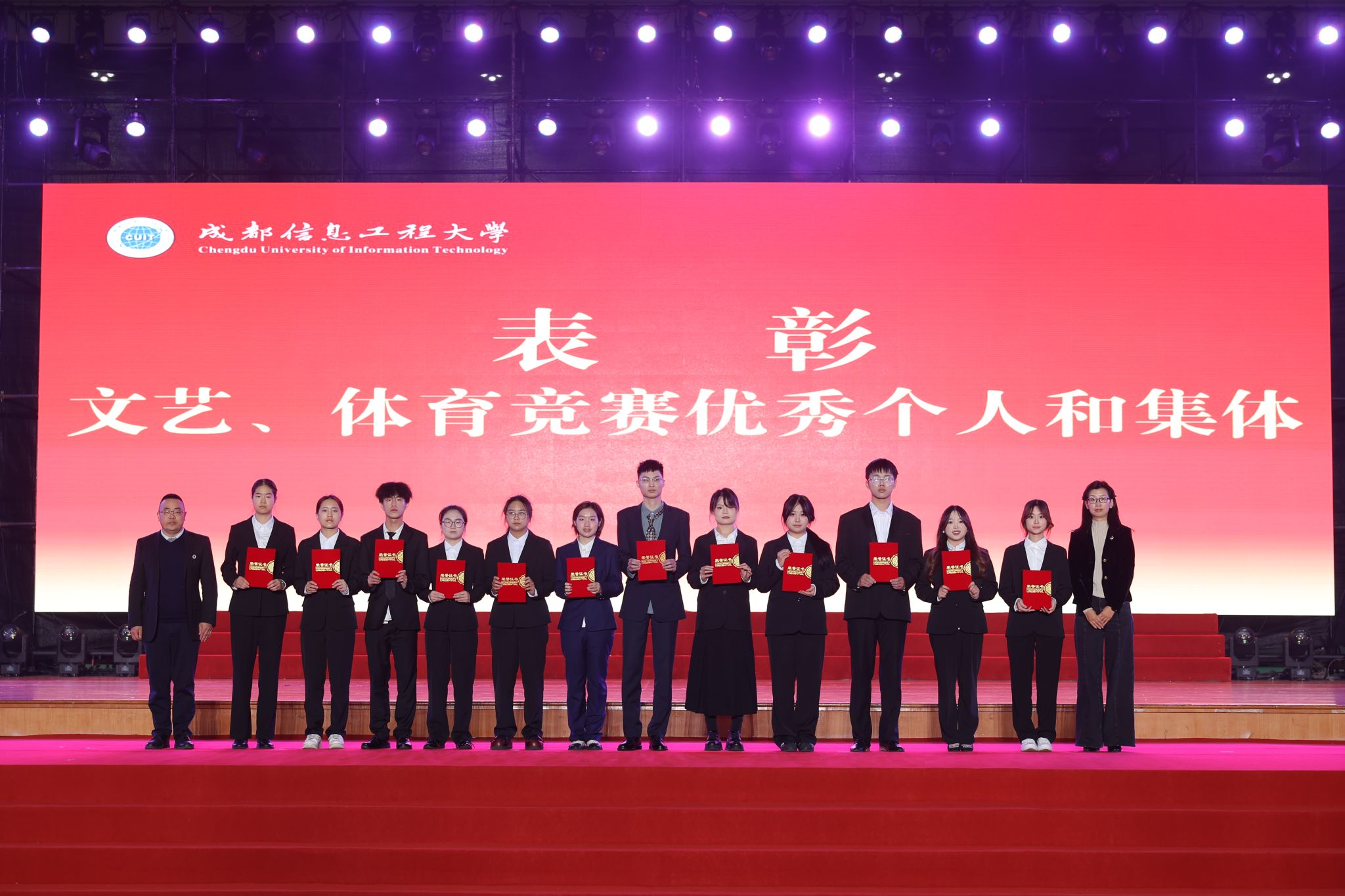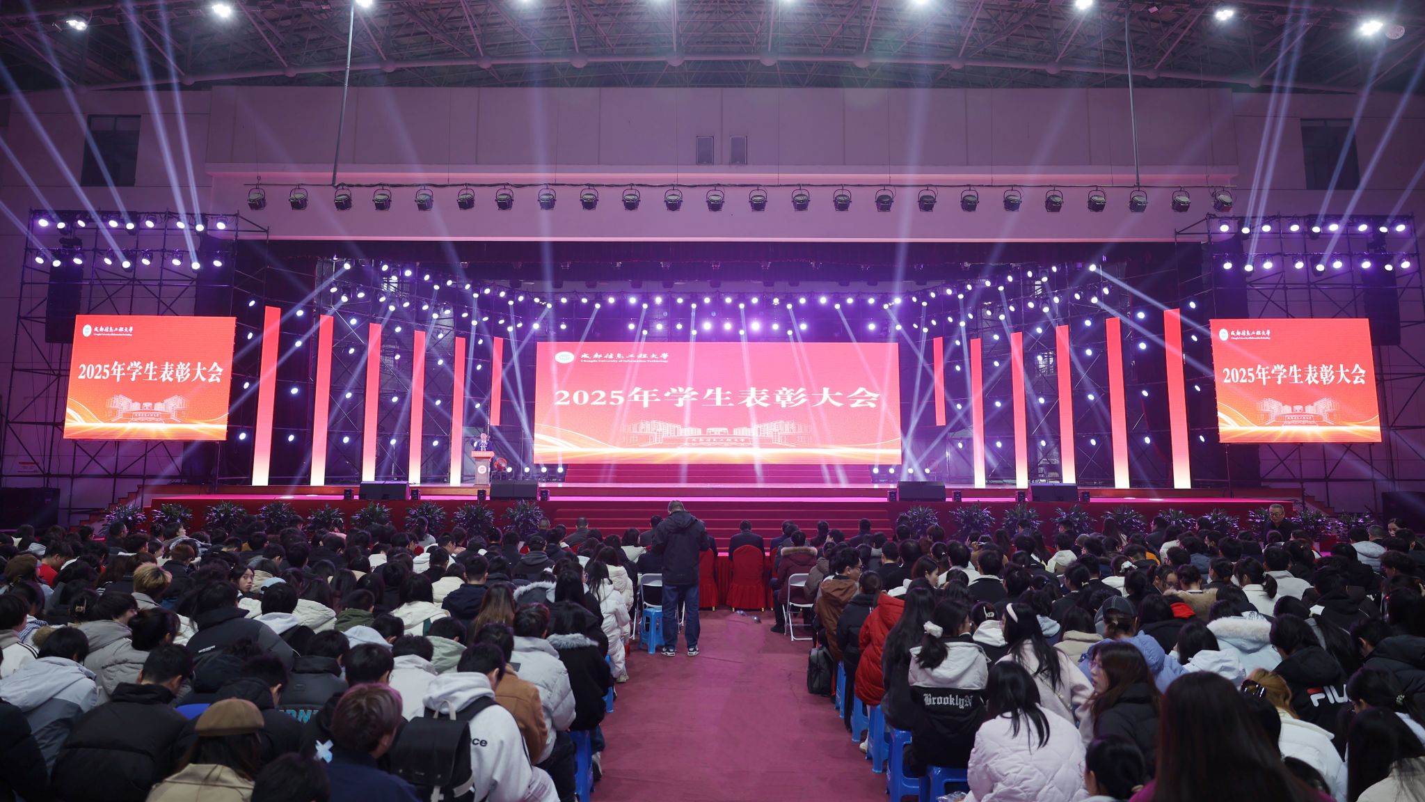 【本网讯】12月26日,学校2025年学生表彰大会在航空港校区体育馆举行。大会表彰了过去一年在专业学习、科学研究、社会实践、文体活动等方面表现突出的优秀学生及先进集体,旨在树立榜样,凝聚力量,激励全体学生砥砺奋进、全面发展。学校在校校领导,各职能部门负责人、教师代表及学生代表出席大会。表彰大会由学校副校长陈权亮主持。