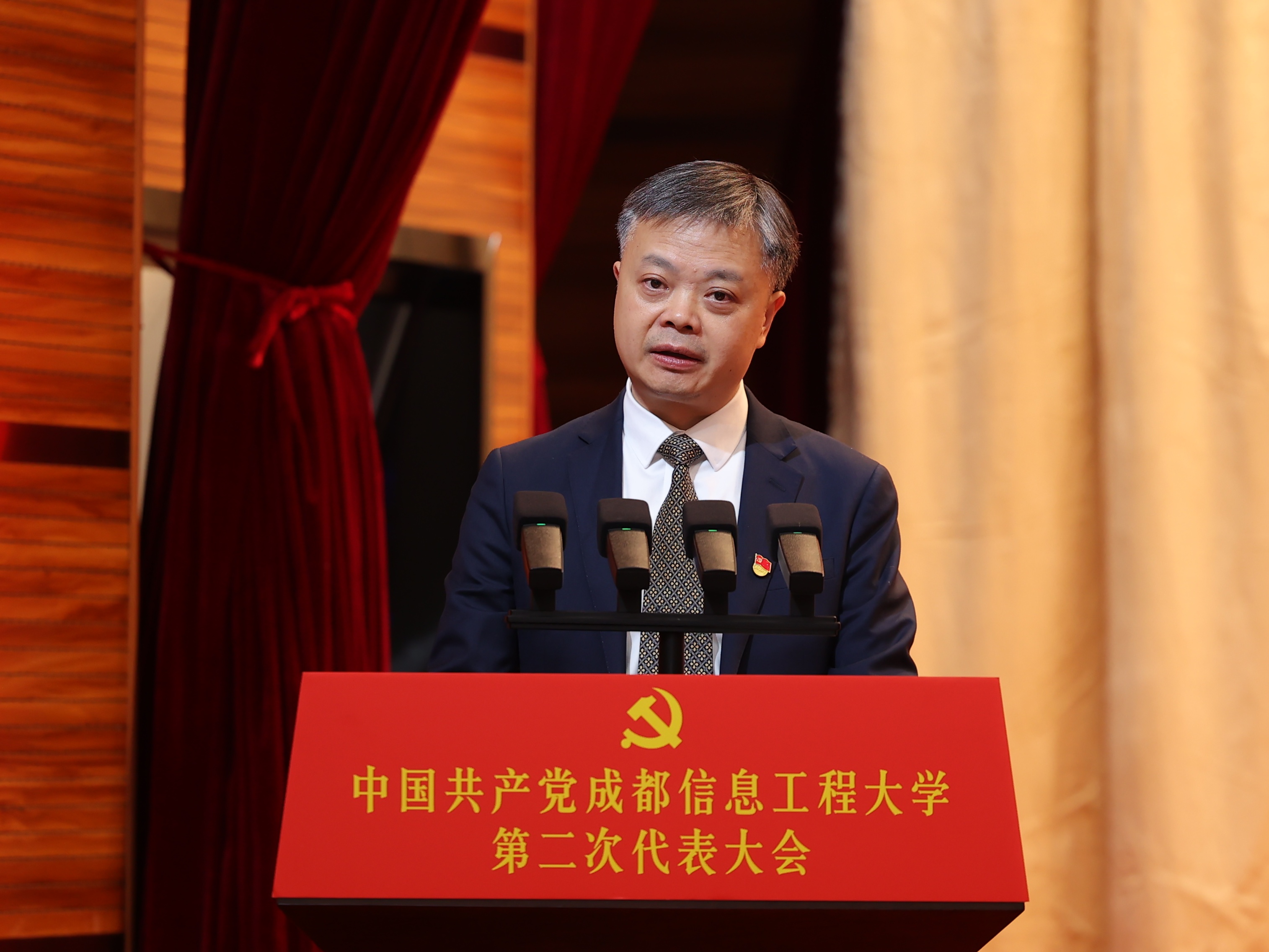 汪正兴和陆卫江分别受省委组织部和省委教育工委、教育厅领导委托,向大会的召开表示热烈的祝贺,并对学校未来发展提出明确要求和殷切期望。他们表示,希望学校坚持党的全面领导,全面落实立德树人根本任务,积极服务国家战略发展大局,在新一届学校党委的坚强领导下,凝心聚力、继往开来,努力开创学校事业发展新局面,为加快建设特色鲜明的一流信息工程大学、谱写中国式现代化四川新篇章作出新的更大贡献。