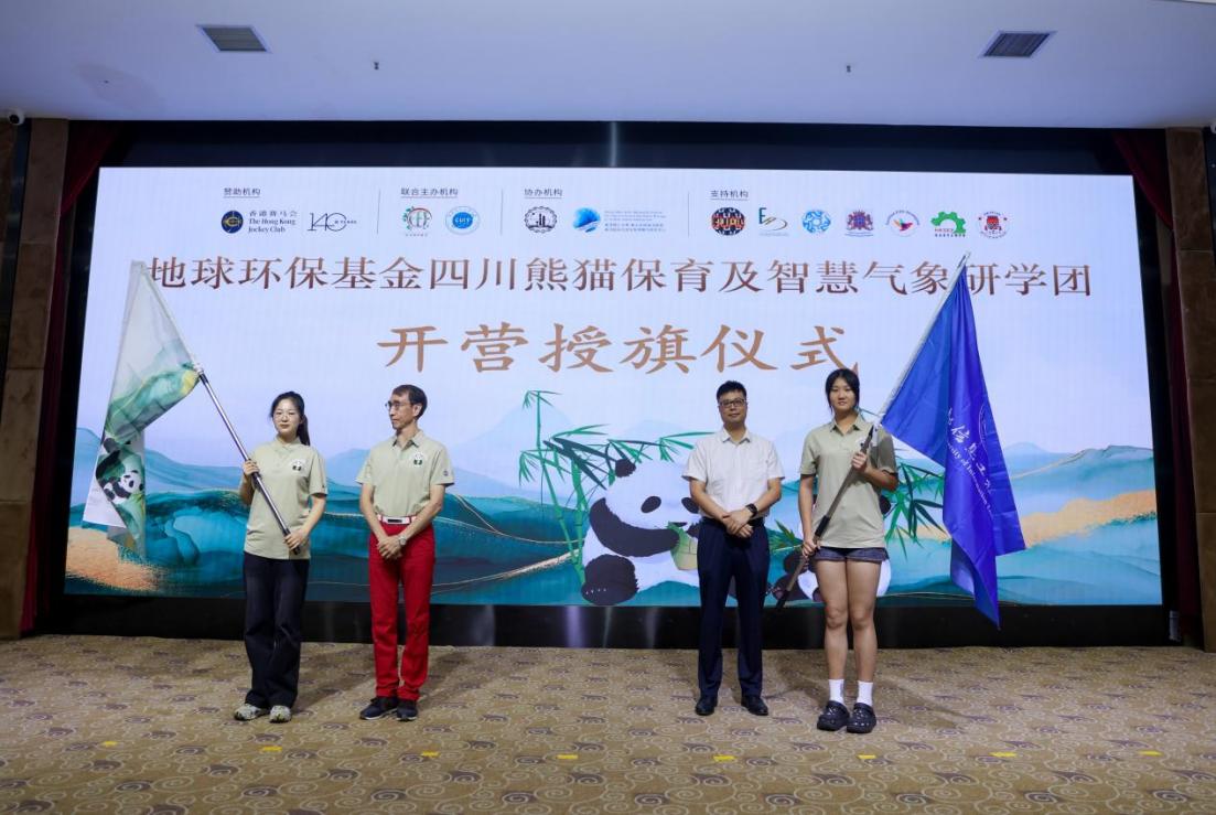 【本网讯】为深入贯彻习近平生态文明思想,推动港澳与内地在气象科技、生态保护与文化教育等领域的交流合作,7月7日上午,2025年地球环保基金四川熊猫保育及智慧气象研学团开营仪式在学校航空港校区国际会议厅举行。本次活动由地球环保基金与新莆京官网联合主办。四川省港澳事务办公室副主任马聪、香港特别行政区政府驻成都经济贸易办事处副主任蔡姿婻,学校副校长吴锡,四川省教育厅对外交流处处长王拉沙,香港赛马会内地事务部副总经理李绮恩,地球环保基金主席兼首席执行官徐润培,学校职能部门及学院相关负责人,来自川港澳多所学校的80余位师生代表参加研学活动。