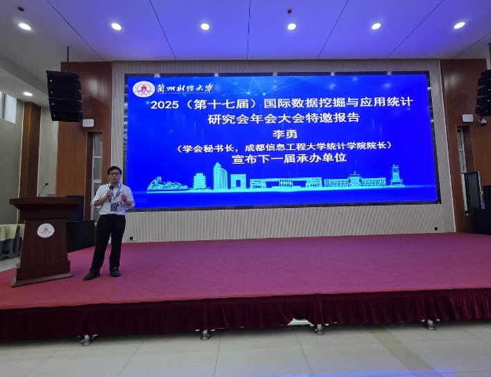 学会秘书长、教育部统计学类专业教指委委员、新莆京3969统计学院院长李勇教授就大数据时代统计学的新认知作总结性报告,并宣布2026(第十八届)国际数据挖掘与应用统计研究会年会的承办单位。