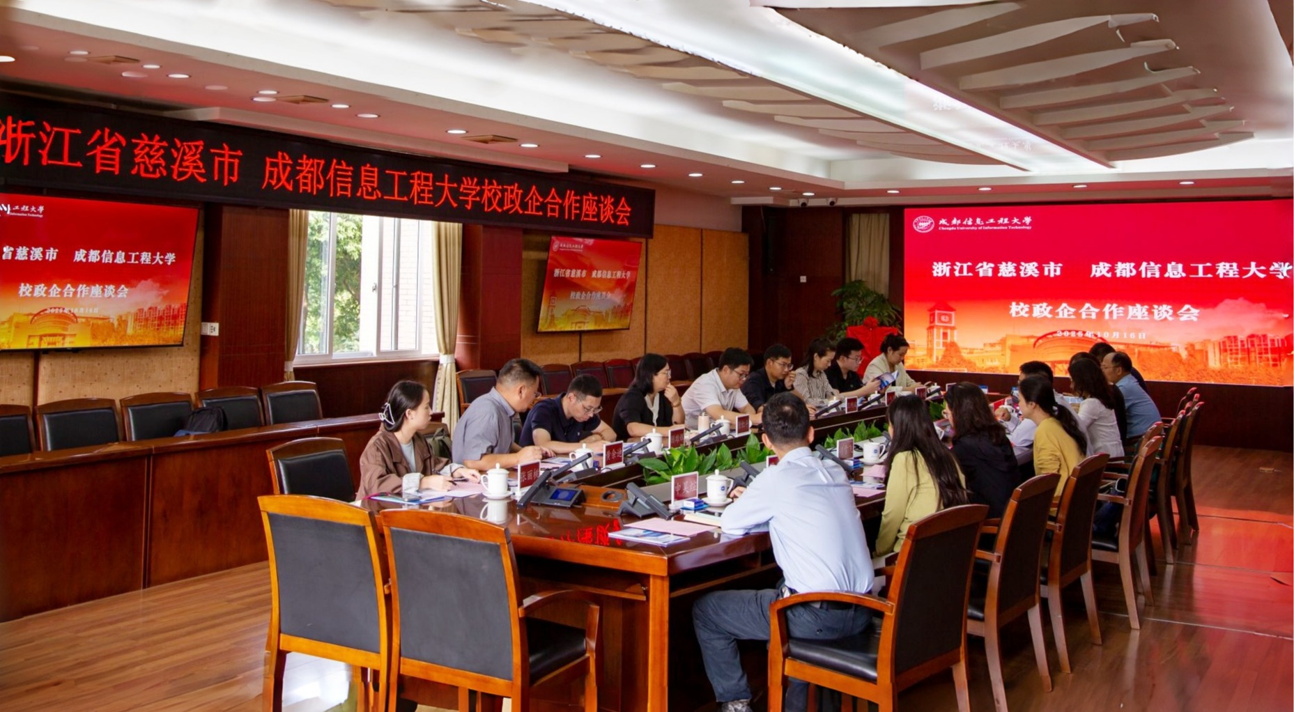 【本网讯】为深化产教融合、促进毕业生高质量充分就业,10月16日,学校在行政楼第七会议室举行与浙江省慈溪市校政企合作座谈会暨签约授牌仪式。慈溪市人民政府副市长鲍百易、学校副校长何晋参加并讲话。