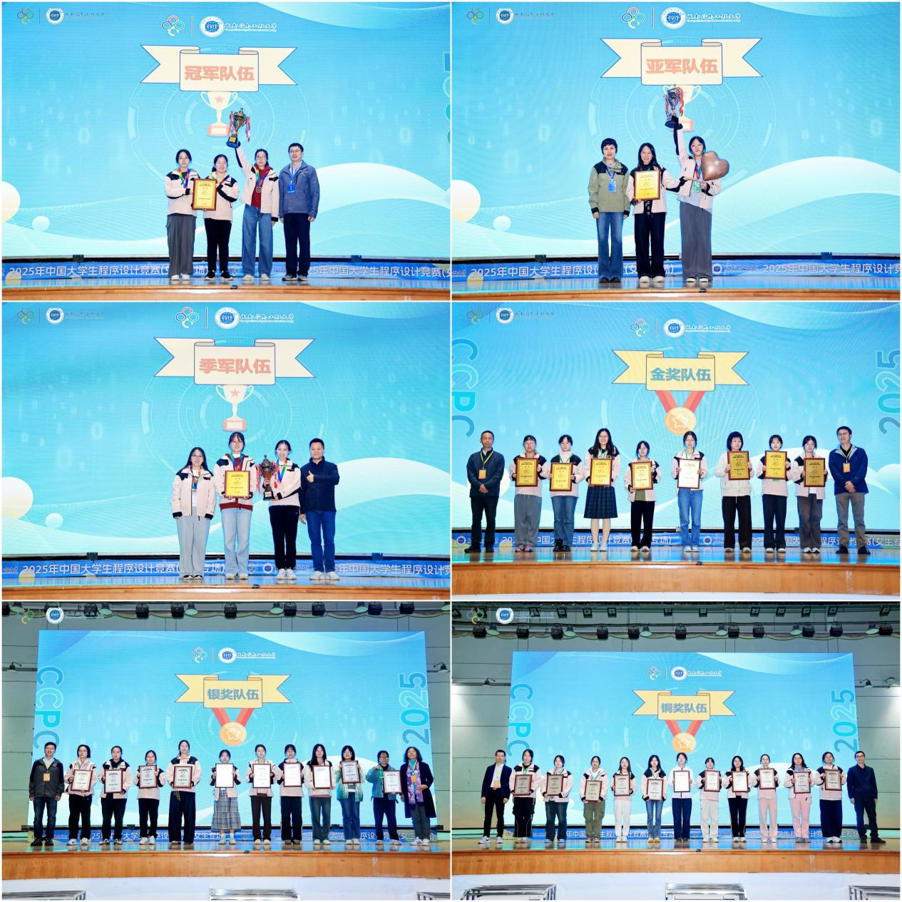 26日下午,举行大赛闭幕式与颁奖环节。经过5个小时的激烈比拼,冠军由香港中文大学(深圳)“WTYTO”队荣膺,亚军为哈尔滨工业大学“Nanani”队,季军则归属同济大学“一块五”队;团体奖项方面,来自香港中文大学(深圳)等20个高校的队伍获金奖,来自华南师范大学等38个高校的队伍获银奖,来自新莆京3969等58个高校的队伍拿下铜奖。杭州电子科技大学“2025杭电女生2队”等12支队伍获评“最快解题奖”。来自新莆京3969、江西理工大学的两支队伍获得“顽强拼搏奖”荣誉。