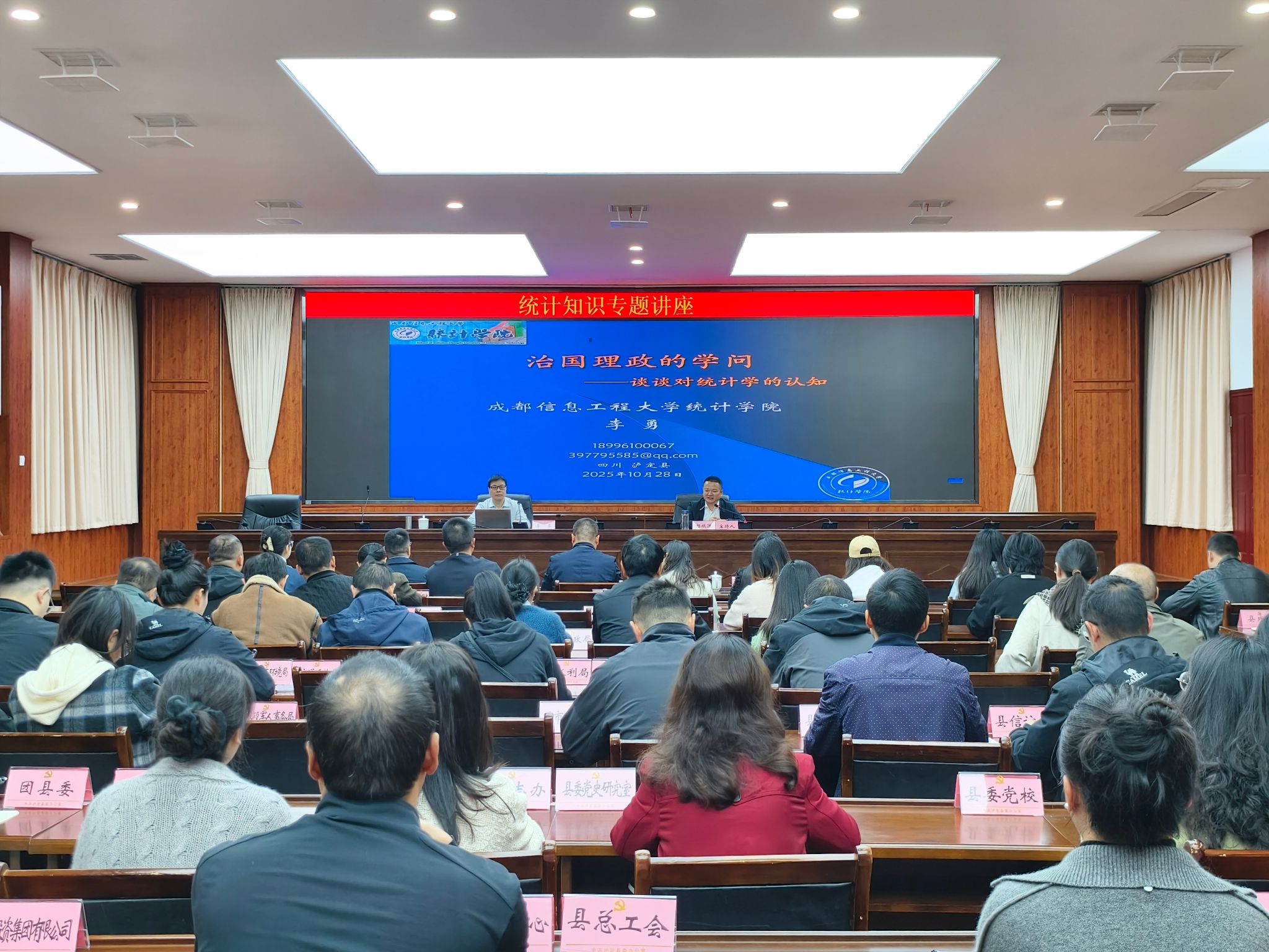 【本网讯】为深入学习贯彻习近平总书记关于统计工作的重要讲话和重要指示批示精神,进一步提高统计业务能力和工作水平,助力泸定县乡村全面振兴,10月28日上午学校统计学院院长李勇教授为泸定县各乡镇、相关部门干部作《治国理政的学问:谈谈对统计学的认知》的专题报告。报告会由泸定县委常委、副县长杨秋洪主持。