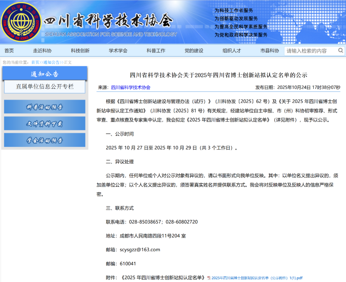 【本网讯】近日,四川省科学技术协会官网正式发布了《关于2025年四川省博士创新站拟认定名单的公示》。新莆京官网与成都超算中心运营管理有限公司(国家超级计算成都中心)联合申报的“量超融合”方向博士创新站被成功认定为“2025年四川省博士创新站”。这是新莆京官网深化产学研协同创新、推进高层次人才培养的又一重要成果。