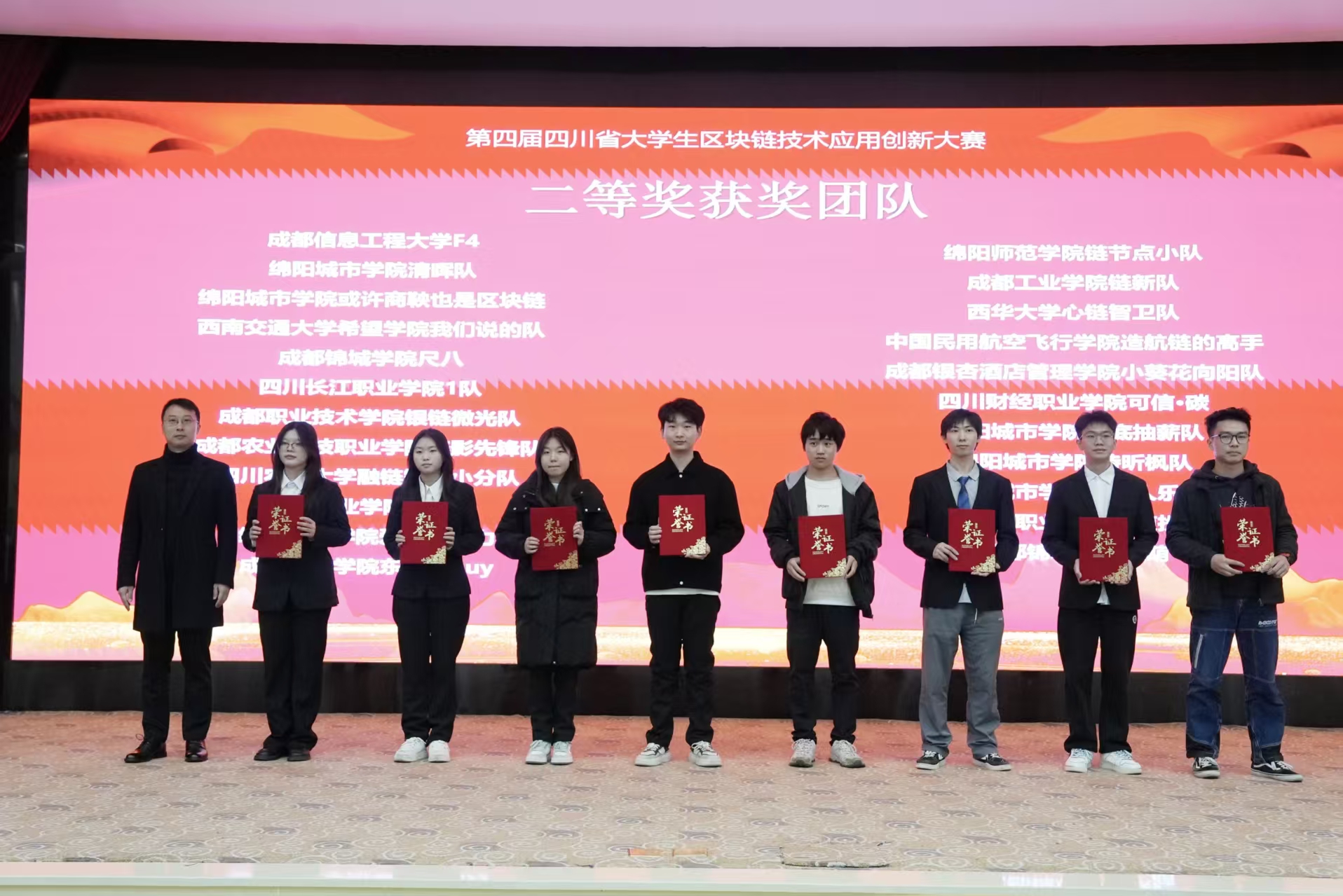 【本网讯】11月22日,第四届四川省大学生区块链技术应用创新大赛决赛暨颁奖典礼在新莆京官网举办。本次大赛由四川省教育厅主办,新莆京3969承办,成都市经济和信息化局新经济发展委员会、成都市区块链产业发展联盟、新道科技股份有限公司和西南民族大学共同参与。学校党委副书记杨奇才、新道科技股份有限公司助理总裁兼西南地区总经理侯爱华等出席典礼并致辞。学校人工智能学院副院长邹茂扬主持颁奖典礼。