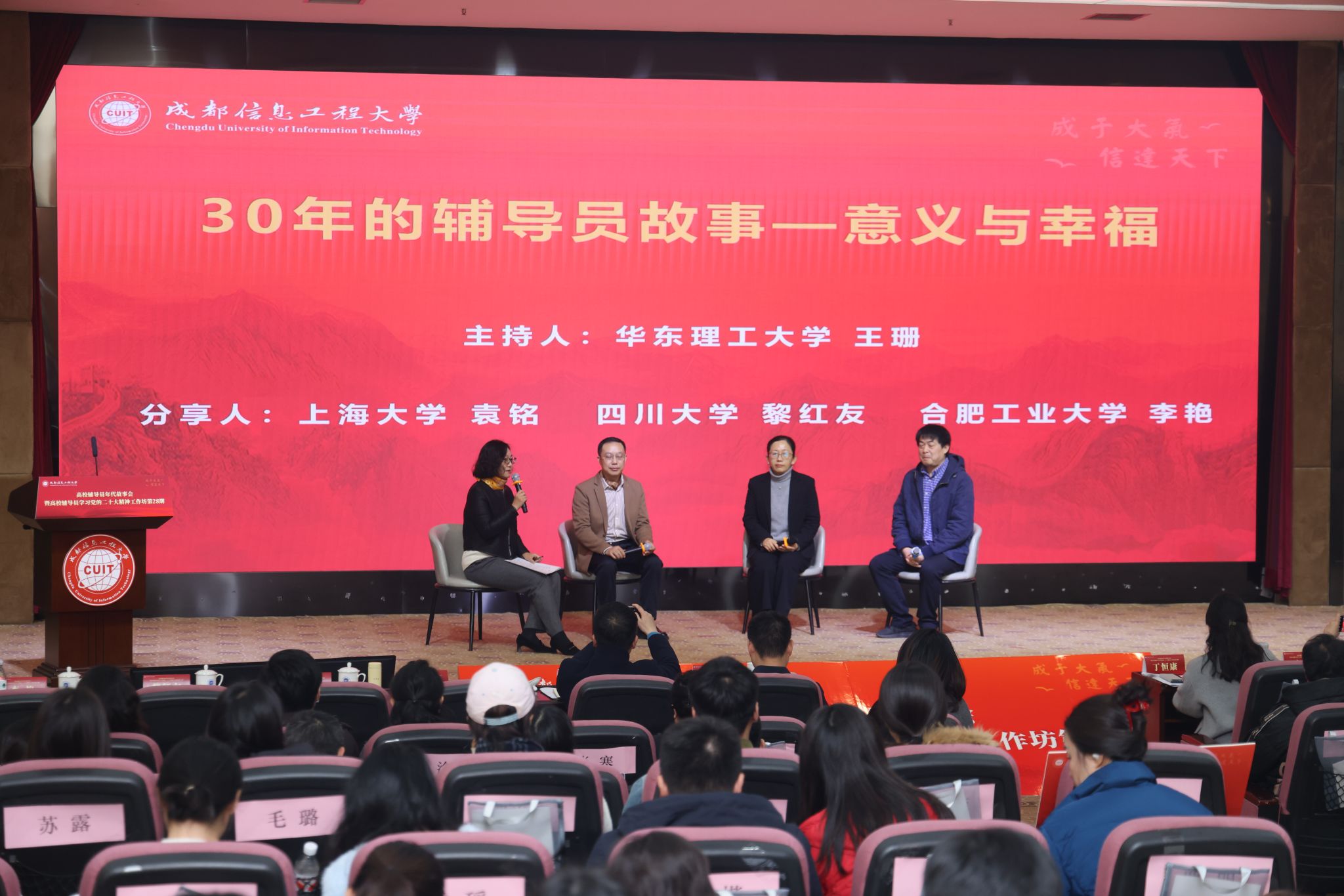 工作坊不仅是一次情感的共鸣与经验的汇聚,也为新莆京官网辅导员队伍搭建了学习交流的优质平台。来自全国武汉大学、四川大学、华东理工大学、西南交通大学、南昌大学等20余所高校的辅导员工作室代表,新莆京官网党委学生工作部,各学院书记、副书记,全体辅导员齐聚一堂,共同聆听跨越年代的育人故事。