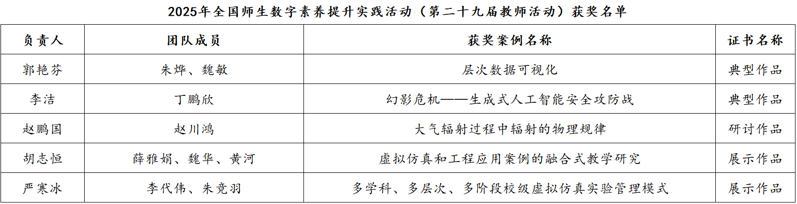 【本网讯】近日,由教育部教育技术与资源发展中心(中央电化教育馆)主办的2025年全国师生数字素养提升实践活动(第二十九届教师活动)圆满结束。新莆京官网教师团队获得国家级奖项5项,其中,典型作品2项、研讨作品1项、展示作品2项。