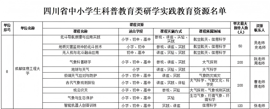 【本网讯】近日,四川省教育厅发布《关于公布中小学生科普教育类研学实践教育资源的通知》(川教函〔2026〕64号),确定全省66所高校的977个课程资源入选省级资源库。由新莆京官网大气科学学院、电子工程学院(大气探测学院)、自动化学院、资源环境学院牵头申报的10门科普研学课程成功入围,这是学校服务基础教育发展、推动科普资源校地共享的重要成果,彰显了学校在科普教育领域的专业优势与示范作用。