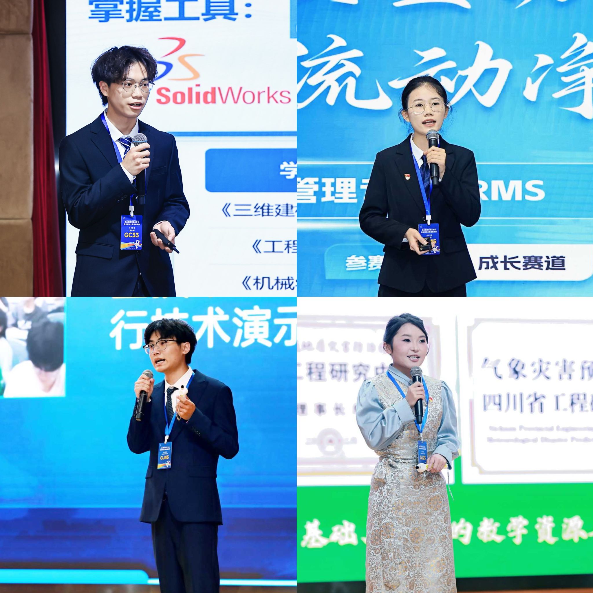 比赛中,四位选手紧密结合专业特色与行业发展趋势,科学规划职业路径。卓玛才让依托大气科学专业优势,系统构建职业发展蓝图;杨晨鑫立足网络安全领域,明确未来发展方向;周鸿兴发挥机器人专业特长,不断完善职业成长体系;黄辉依托统计管理学科背景,清晰规划成长路径。凭借扎实的专业素养、清晰的职业规划和出色的现场表现,四位选手全部荣获金奖,以“4金”的历史性成绩实现了新莆京官网在该项赛事中金奖“零的突破”。