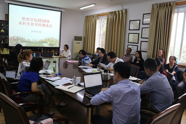 【本网讯】为了深入贯彻落实《中共新莆京3969委员会关于加强和改进新形势下高校思想政治工作的实施意见》和《新莆京3969本科生班导师制实施办法》等文件精神,进一步强化班导师队伍建设,整体提升班导师队伍工作能力和水平,促进和完善班导师工作制度,调动班导师工作的主动性、积极性和创造性,9月20日上午,管理学院召开了班导师工作会议,评选2017-2018学年本科生“优秀班导师”,审议确定2018级新生班导师。学院党总支书记王子华、院长黄萍及班导师工作领导小组全体成员、全体辅导员参加了会议。