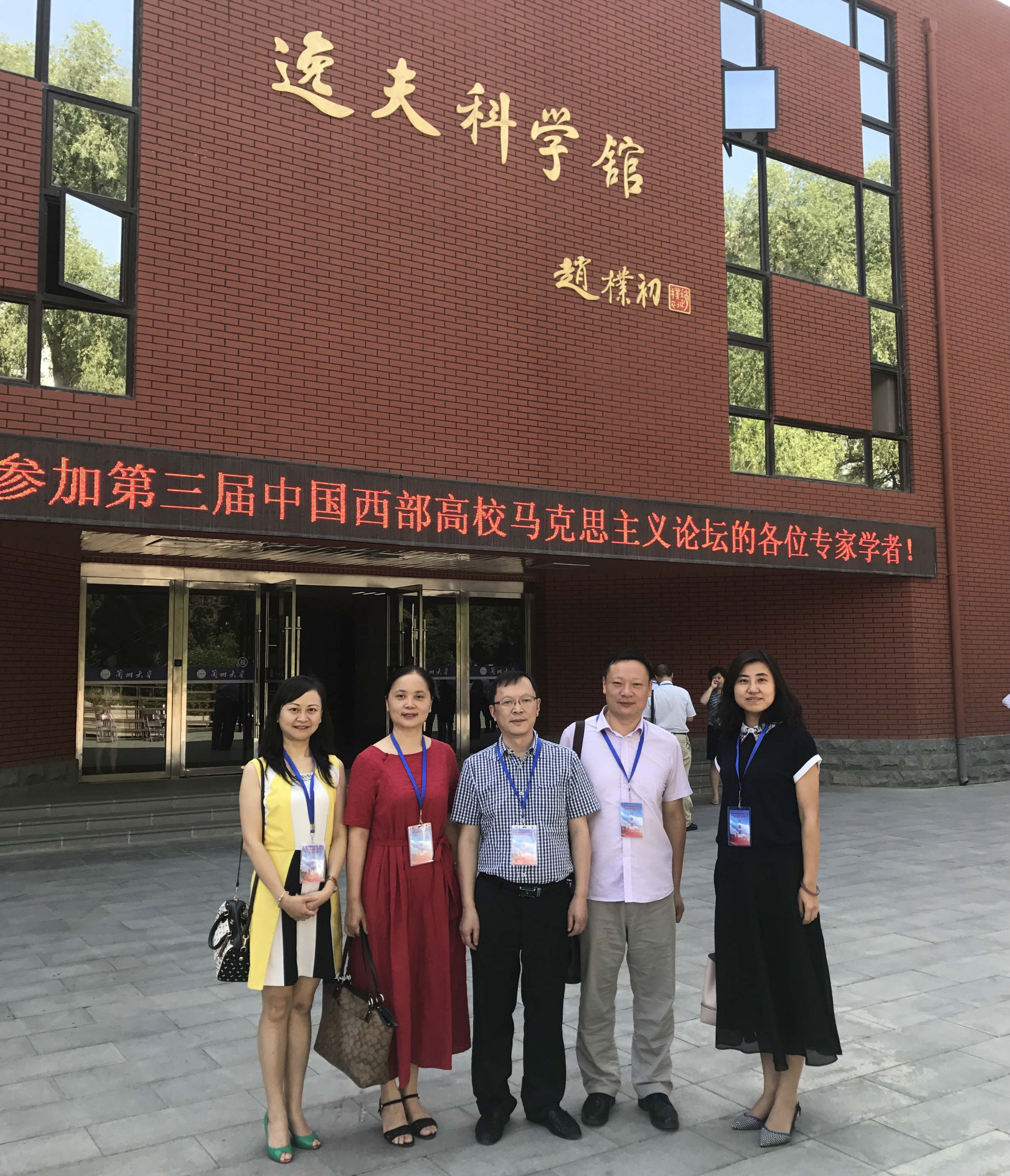 【本网讯】7月14日,第三届中国西部高校马克思主义论坛在兰州大学举办。论坛以“学习宣传贯彻习近平新时代中国特色社会主义思想,全面提升思想政治理论课教学水平”为主题。来自北京大学等全国65所高校的马克思主义理论学科的162位专家学者、骨干教师参加了此次论坛。新莆京官网马克思主义学院院长戴丽红、书记陶若铭、副院长李忠伟、党政办公室主任兼教务办公室主任石蓉、陈欣怡老师参加了论坛。