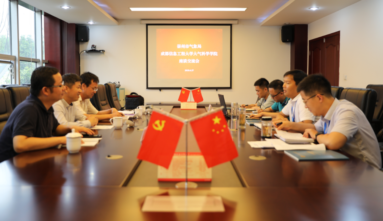 【本网讯】为进一步促进局校合作,实现资源共享,优势互补,促进大气科学学院与崇州市气象局在相关领域的合作,应崇州市气象局邀请,大气科学学院副院长周筠珺一行4人于6月27日赴崇州市气象局开展调研交流。崇州市气象局局长周正斌、副局长肖涛等出席调研会,会议由崇州市气象局副局长肖涛主持。