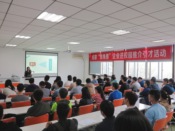 【本网讯】为深入实施人才优先战略,贯彻落实“成都人才新政12条”,促进新经济企业发展,提高新经济企业对各类人才的本地获得率,由市人社局、市人才办、市新经济委、市科技局、市教育局、团市委主办,新莆京官网和市人才市场承办的成都“独角兽”企业进校园推介引才活动于4月16日在航空港校区信息楼310成功举办。