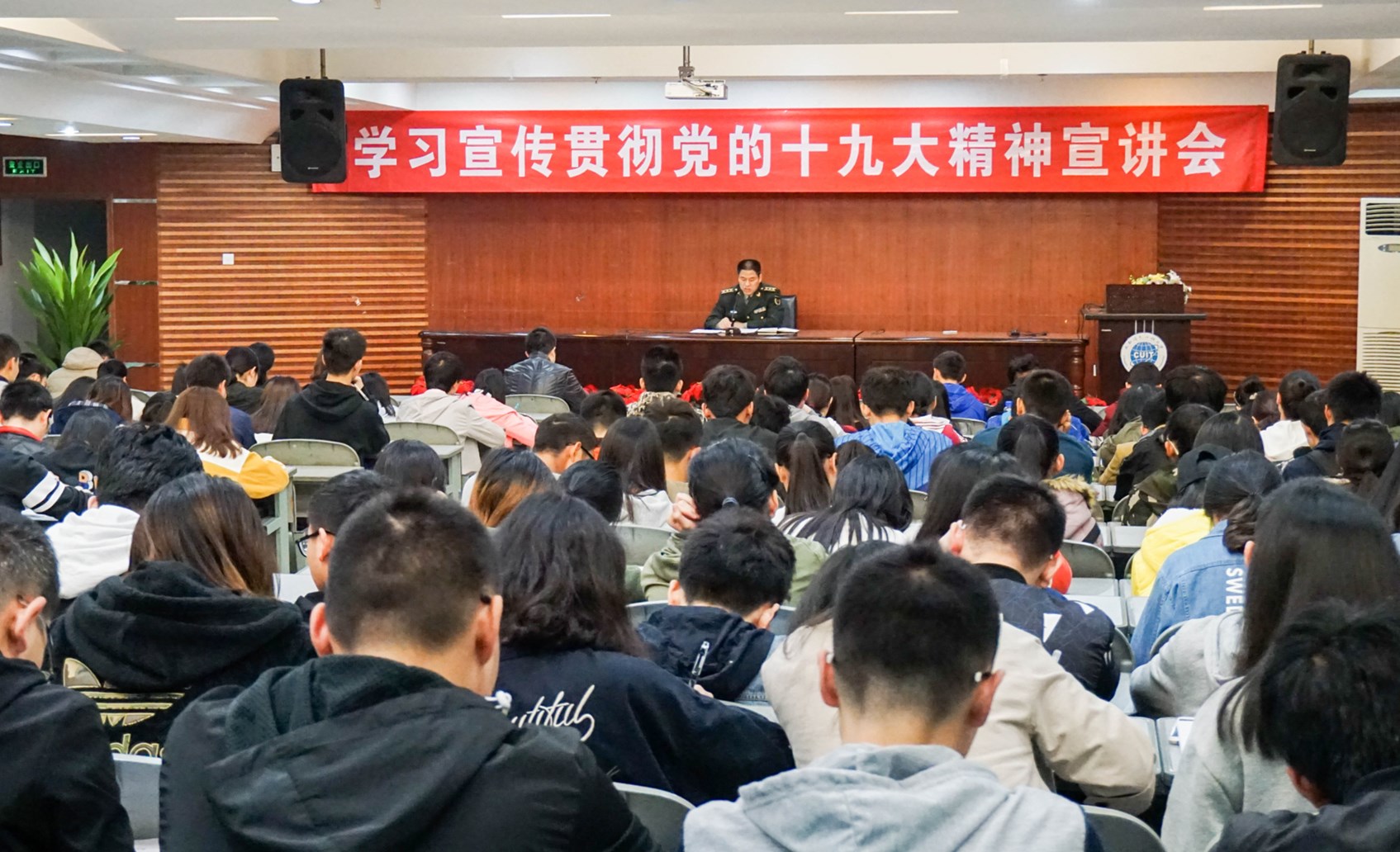 【本网讯】为深入学习宣传贯彻党的十九大精神,在新莆京官网学生中迅速兴起学习宣传贯彻十九大精神的热潮,11月15日,学生工作处在新莆京官网航空港校区学术报告厅开展了学习宣传贯彻十九大精神宣讲会,学生工作处特邀双流区武装部王政委做主讲人。航空港校区各学院辅导员代表及学生代表300多名参加宣讲会。宣讲会由学生工作处副处长陈智勇主持。