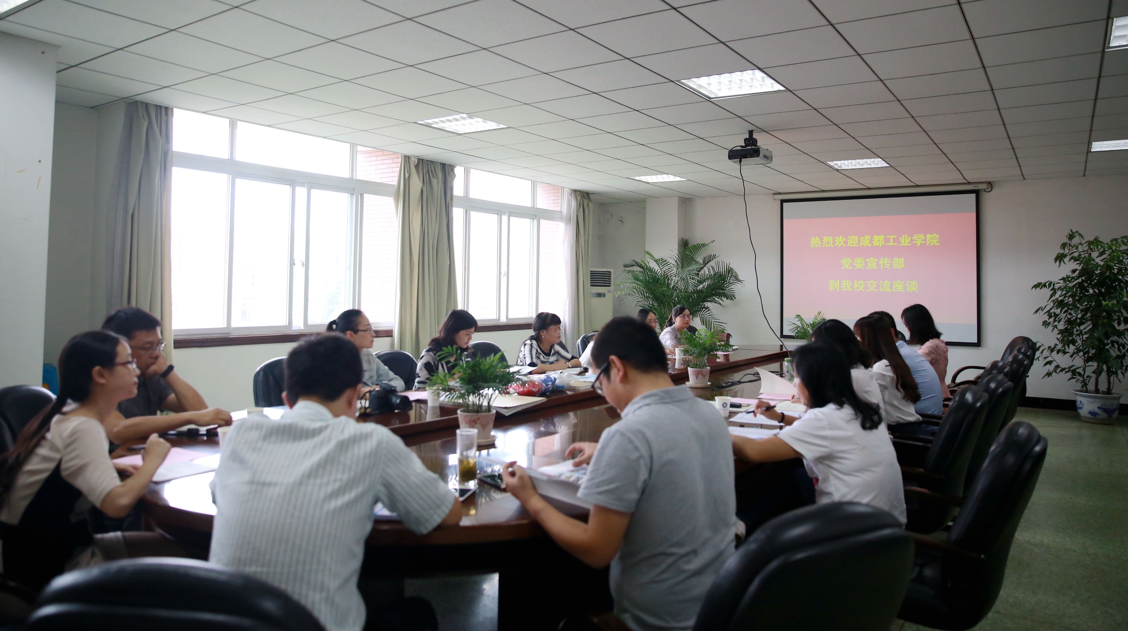 【本网讯】9月26日,成都工业学院党委宣传部部长冯瑛、副部长鲜国颖一行8人到新莆京官网党委宣传部考察交流学校宣传思想工作。学校党委宣传部部长饶华,副部长丁恒康、徐紫电及相关工作人员参加了交流座谈会。