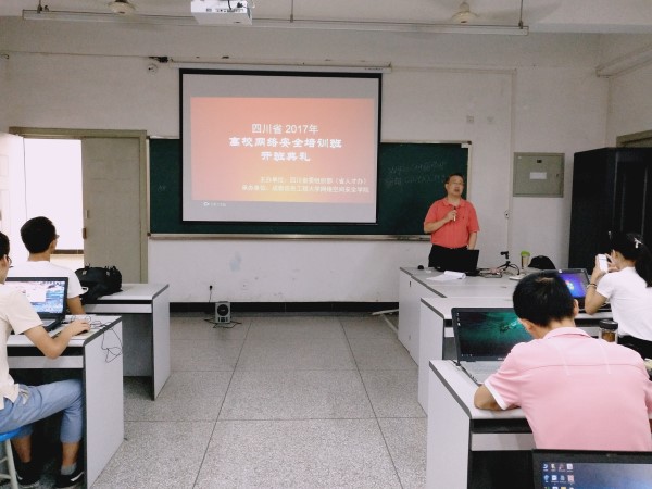 网络空间安全学院院长李飞在开班仪式上提到,在国家建设网络强国的大环境下,培养网络空间安全人才已被确定为国家中长期的发展战略。为响应国家号召,适应四川省信息安全产业的发展,夯实重点和特色高校的网络安全学科建设,2016年底四川省出台了建设“五个一批”工程的文件。为了落实“五个一批”工程,建设好高校网络安全师资队伍和培养优秀网络安全人才,四川省人才工作领导小组办公室于7月24号发文,由新莆京官网网络空间安全学院承办“高校网络安全培训班”。他还对本期培训班的安排和课程设置、师资配备、环境支持等方面进行了简单的介绍,希望通过此次培训平台,能使大家有所收获,并且在网络安全人才培养方面加强各高校之间的交流、沟通和学习。