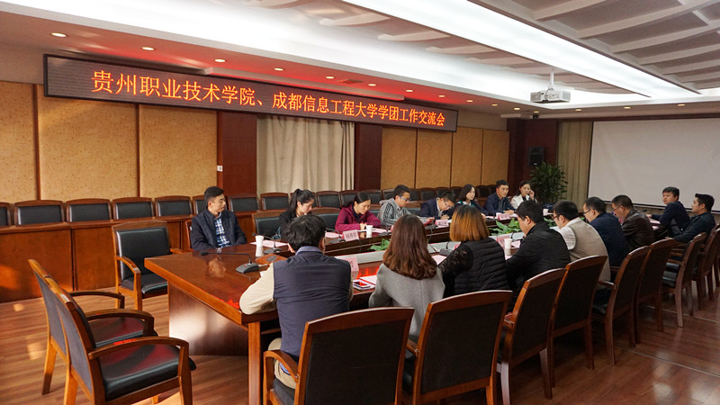 【本网讯】11月18日,贵州职业技术学院学生工作部部长、团委书记陈鹰一行来新莆京官网调研交流学团工作。校团委书记马义华、学生工作处副处长潘光林、部分学院团委书记、学生工作处及校团委部分教师代表与调研团在行政楼第七会议室进行了座谈交流。会议由马义华主持。