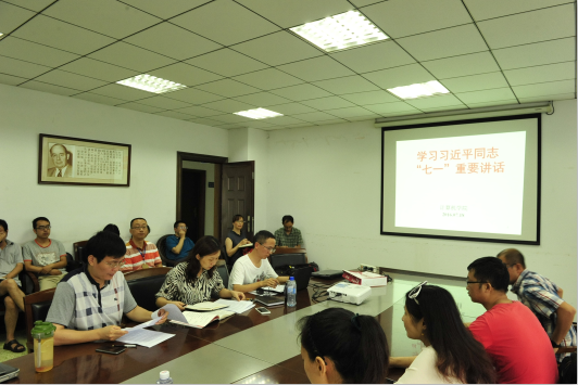 学院要求全院党员教师要把学习贯彻习近平总书记“七一”重要讲话作为重要政治任务,结合开展“两学一做”学习教育精心安排部署学习活动,深入领会讲话精神,不忘初心,增强自信,扎实推进各项工作,为学校发展迈上新台阶做贡献。