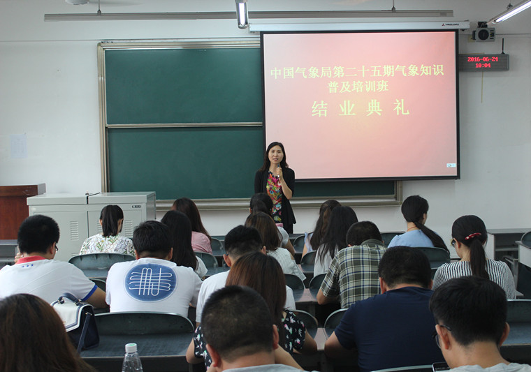 【本网讯】 中国气象局第25期气象知识普及培训班(文科)如期结业,结业仪式于6月24日上午在新莆京官网4309教室进行,大气科学学院党总支书记张小红、培训班班主任吴云以及全体培训班学员参加了结业仪式,结业仪式由吴云主持。