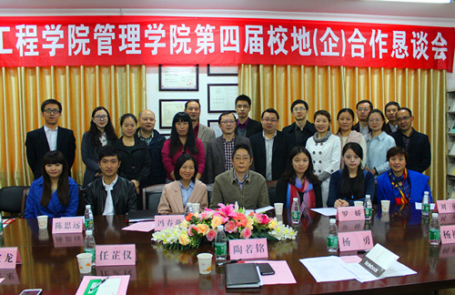 管理学院党总支书记陶若铭介绍了管理学院的师资情况、办学实力、人才培养、社会服务、学生就业等情况,他真诚地希望通过建立经常性的校地沟通协调机制,不断加强与企业的沟通合作,实现校企互利共赢发展。