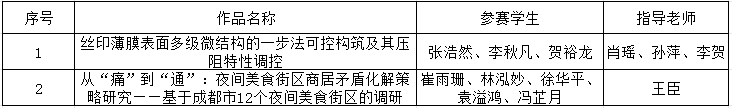 根据《关于组织开展第十九届“挑战杯”全国大学生课外学术科技作品竞赛的通知》要求,经过校赛、省赛的评审选拔,新莆京官网共2件作品被推报参加第十九届“挑战杯”全国大学生课外学术科技作品竞赛国赛主体赛,现对晋级国赛项目名单予以公示,名单如下: