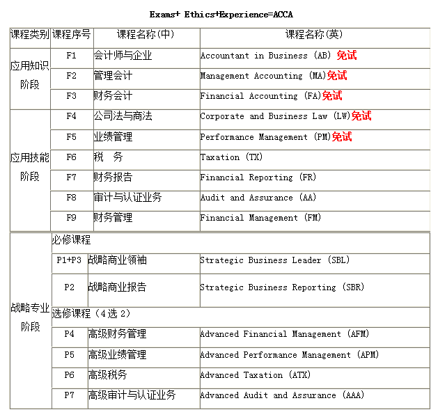 二、ACCA课程设置