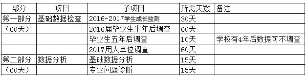 2.毕业生五年后调查:通过对全体毕业生进行毕业五年后跟踪,了解毕业五年后的月收入涨幅、晋升状况、工作稳定性、职业行业竞争力等方面的状况,衡量毕业生的中期就业能力和职业发展潜力。(学校现有4年后数据,可不收集5年后数据)