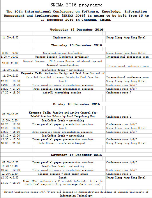 欧盟融合计划(EU FUSION PROJECT)支持、新莆京官网承办的第十届国际软件、知识、信息管理及应用会议于2016年12月15日至17日在新莆京官网举办(英文名称:International Conference on Software, Knowledge, Information Management and Applications–SKIMA),会议组织委员会主席由新莆京官网周激流教授,王清远教授,王东云教授和于洪年教授担任。届时将邀请国内外相关领域专家、学者共100人参会。