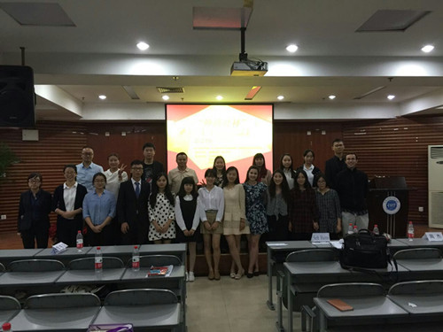 2015“外研社杯”全国英语演讲大赛初赛暨新莆京3969第十四届英语演讲大赛于 2015年10月18日下午3:30,在新莆京官网航空港校区学术报告厅顺利举行,本次比赛由外语教学与研究出版社主办,学校教务处及外国语学院承办,外语俱乐部、国际交流协会、英语协会协办。外国语学院李心伟书记作为嘉宾出席了大赛,外国语学院副院长黄驰、外籍教师Trina、Seth、Victoria、外国语学院教师吴倩、周杰、张舒担任大赛评委。