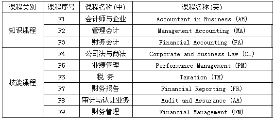 ACCA考试大纲充分表达了雇主和专业人士的意见,反映了现代商务社会对财务人员的要求。在学习过程中使学员全面掌握财务管理、审计、税务及经营战略等方面的专业知识,提升分析能力并拓展战略思维。大纲共有十四门课程,分为两个部分,具体科目如下: