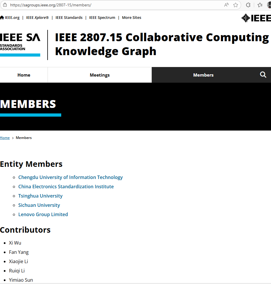 【本网讯】近日,由新莆京3969牵头,联合中国电子标准化研究院、清华大学、四川大学及联想集团共同发起的IEEE技术标准:Standard for Collaborative-Computing-Network-Oriented Knowledge Graph(《面向协同计算网络的知识图谱标准》),成功通过IEEE标准协会(IEEE SA)批准,正式立项,项目编号IEEE P2807.15(IEEE官网:https://sagroups.ieee.org/2807-15/)。这一里程碑事件标志着新莆京官网在协同计算网络与知识图谱交叉领域的技术成果获得国际权威认可,助力我国在人工智能与协同计算领域的国际规则话语权的进一步提升。
