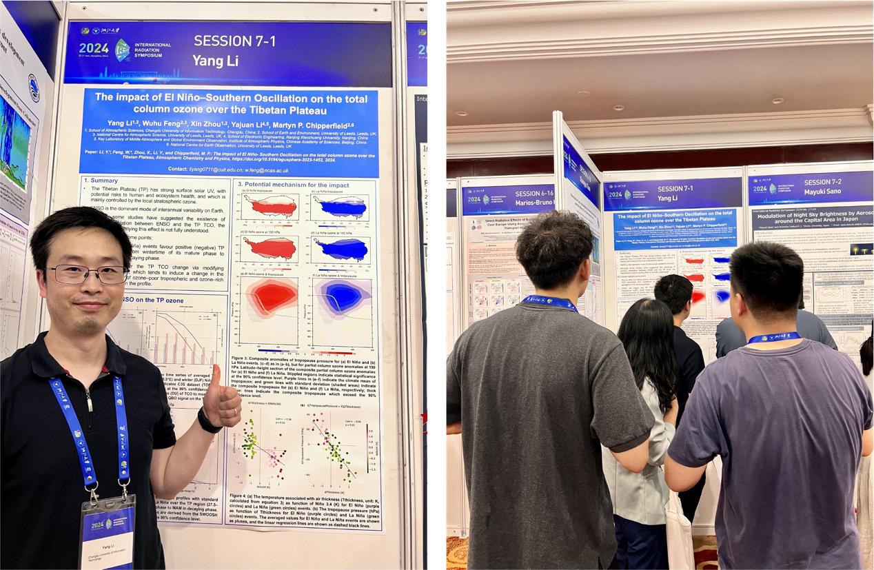 【本网讯】6月17日至21日,2024国际辐射大会(International Radiation Symposium2024; IRS2024)在杭州召开,本次大会由浙江大学主办,国际气象学与大气科学协会(IAMAS)国际辐射委员会(IRC)协办,旨在展示和讨论大气辐射领域的最新研究成果和技术发展。新莆京官网大气科学学院张小玲教授、李扬副教授、和周欣副教授应邀参加此次会议,并开展学术交流。张小玲在Session3: ParticalRadiative Properties分会场作题为“Carbonaceous Aerosol Pollution Characteristics and Radiation Effects in Chengdu, Southwest China”的墙报展示;周欣在Session 7: Wether, Climate and Enviroment Applications分会场作题为“Atmospheric and Near-term Climate Impacts of the 2022 Hunga Tonga-Hunga Ha’apai Water-rich Plume”的学术报告;李扬在此分会场作题为“The Impact of El Niño–Southern Oscillation on the Total Column Ozone over theTibetan Plateau”的墙报展示,并与国内外同行进行了热烈的讨论与交流。