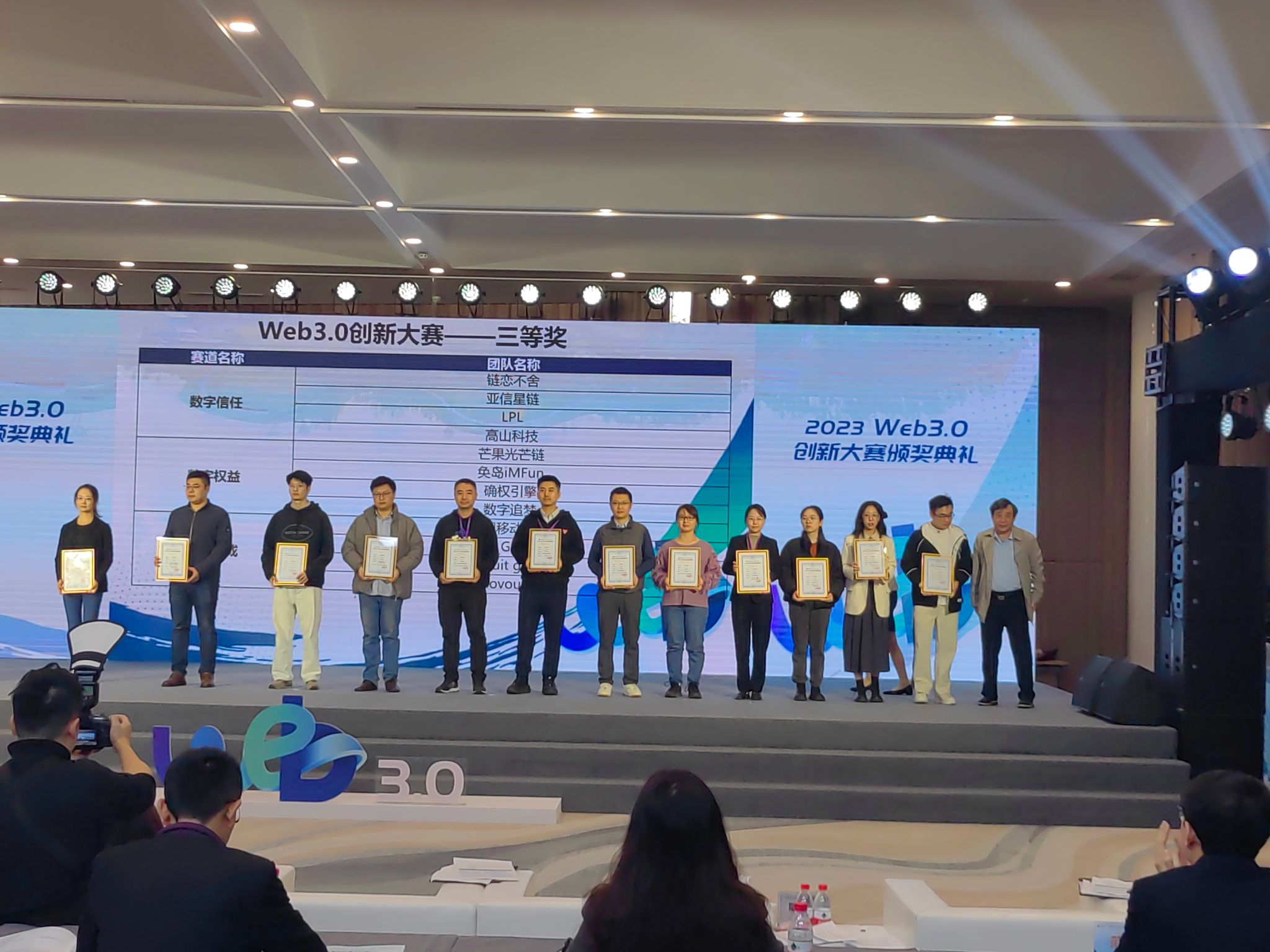 大赛于12月7日举行颁奖典礼,典礼上开展了2023 Web 3.0创新大赛重点落地项目集中签约、"双碳"合作签约仪式、渝杭未来科技产业园入驻企业集中签约等重磅活动。