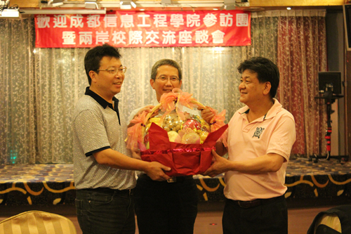 我院代表团还访问了台北城市科技大学,与资讯工程系主任赖阿福、学校资讯工程著名教授邓一中进行了交流和座谈,学校校长连信仲与周激流互赠校旗和纪念品。参观了资讯工程学院实验室,学校机器人博物馆等。两校意向在信息类学科和管理学科进行教师互访和学生交流。